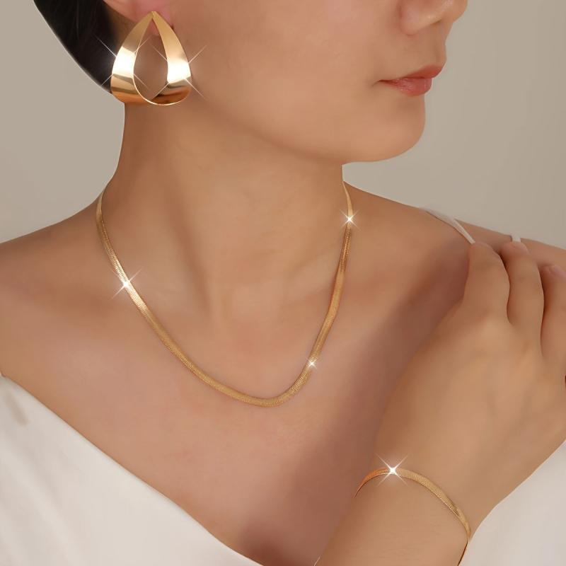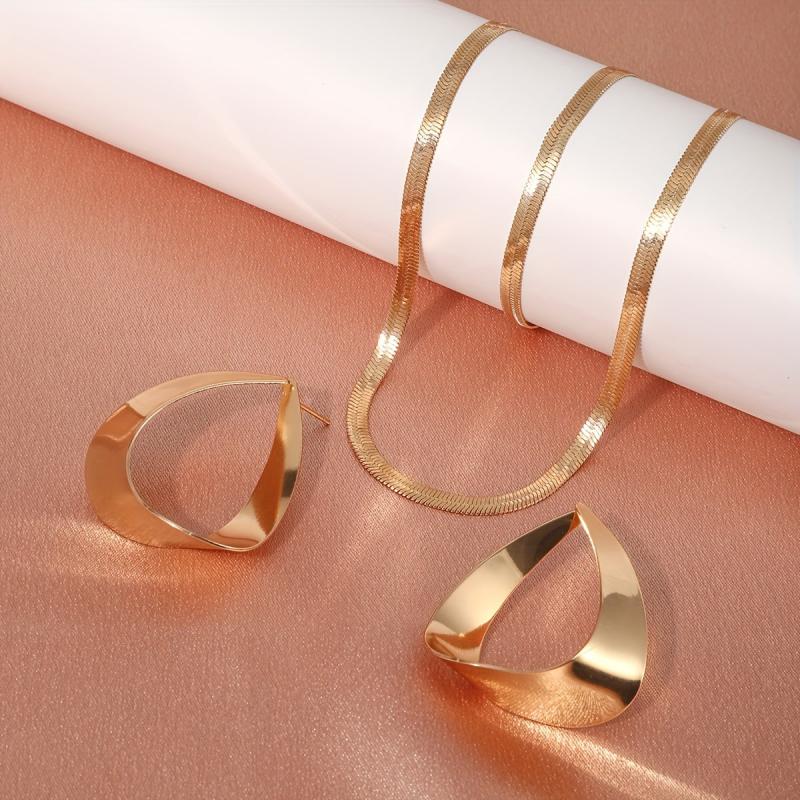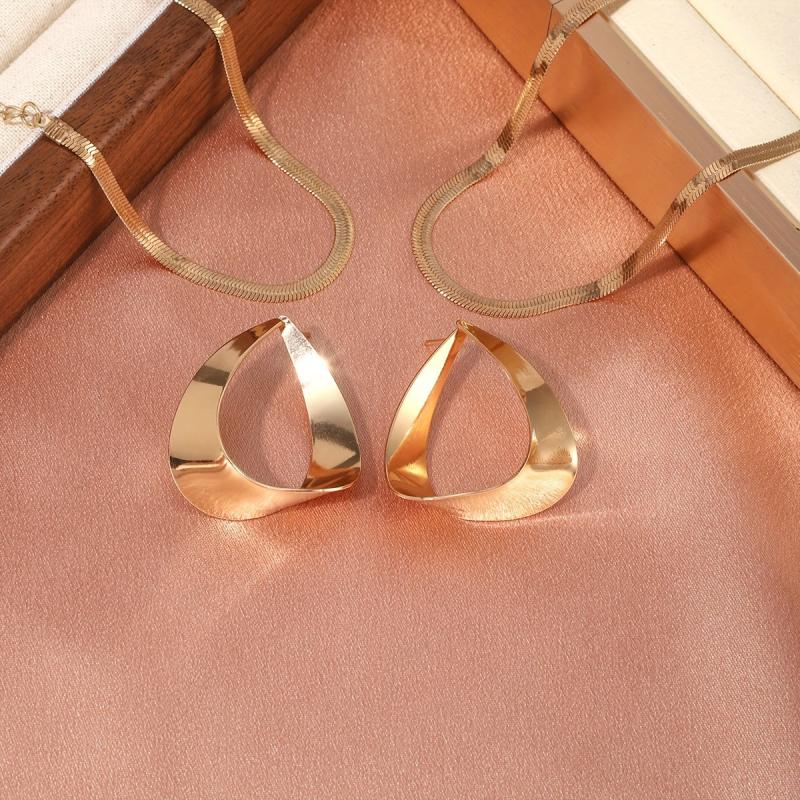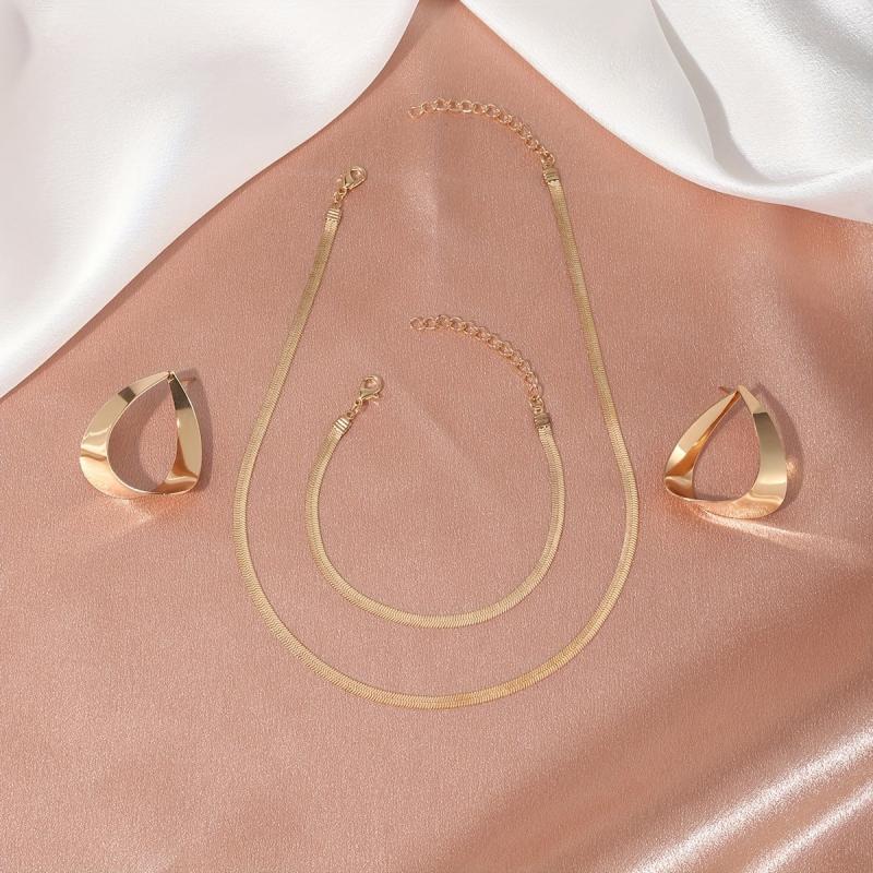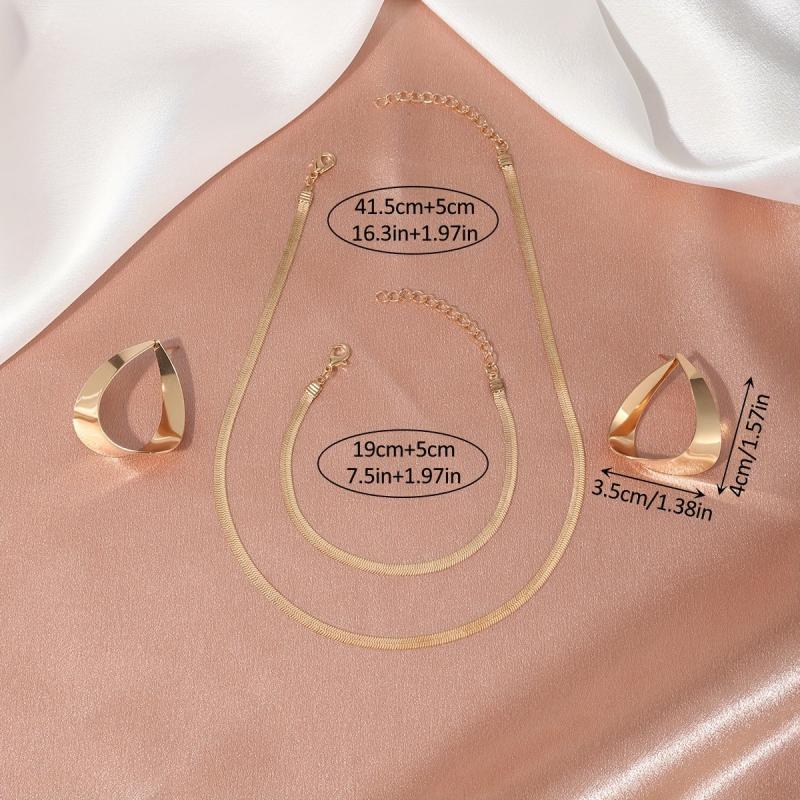 Complete your look with this 4-piece jewelry set featuring drop earrings, pendant necklace, and bangle. Made of iron with stainless steel posts, this set is a versatile choice for everyday wear.