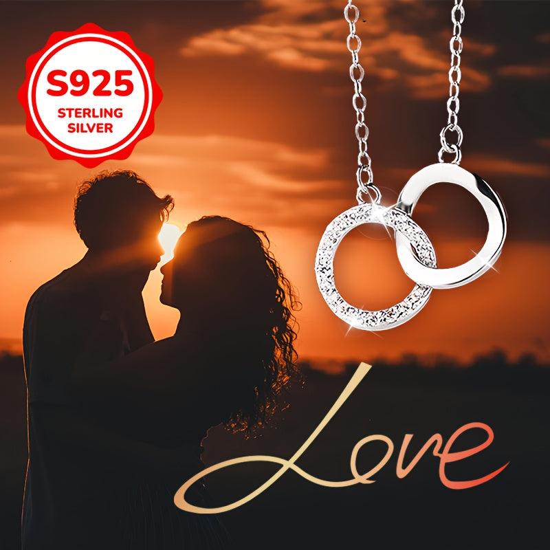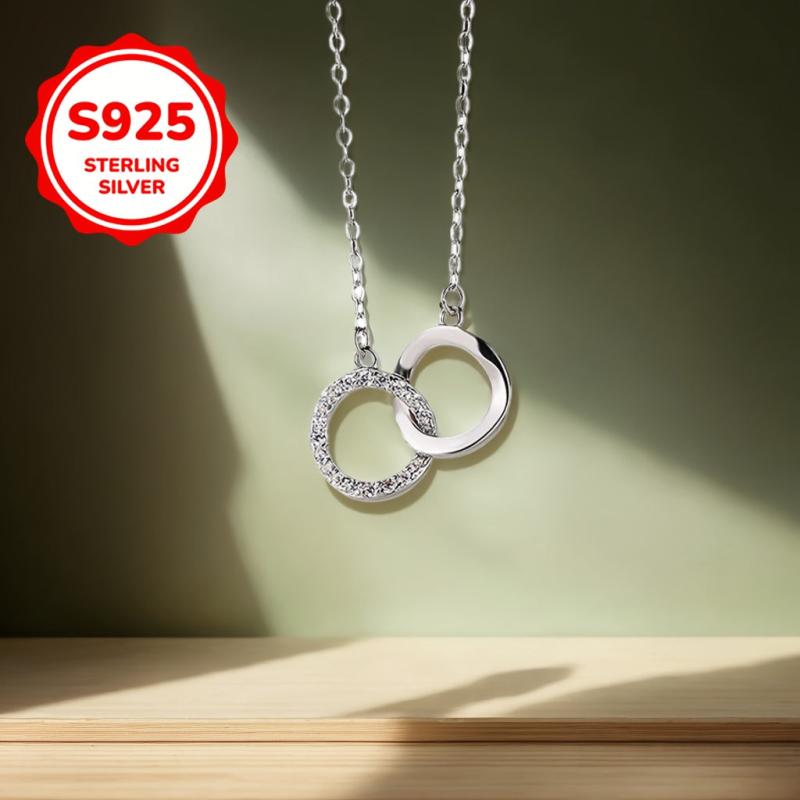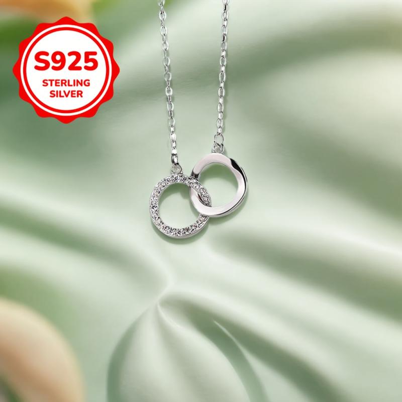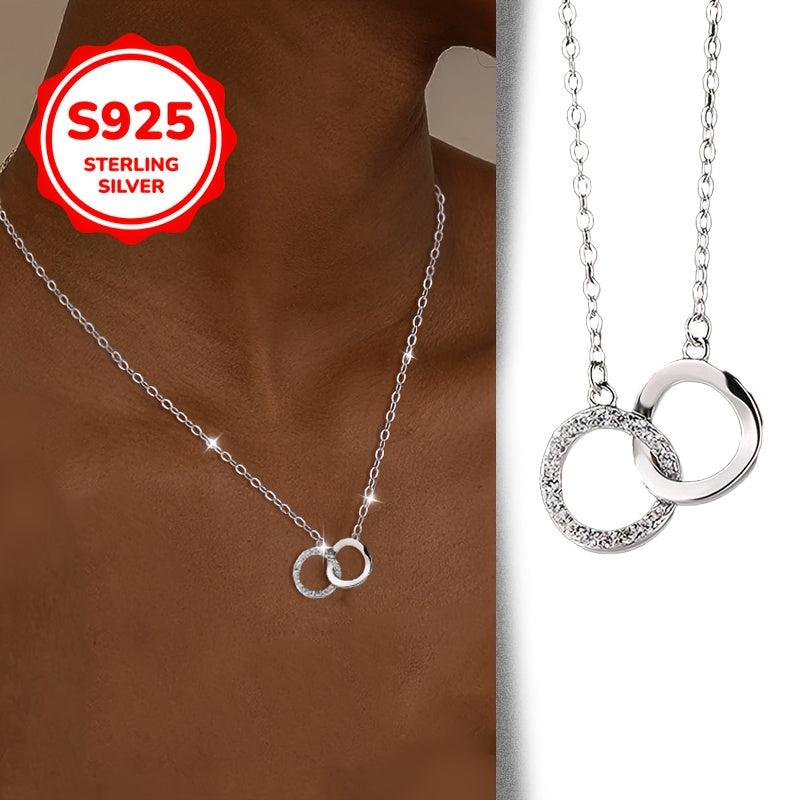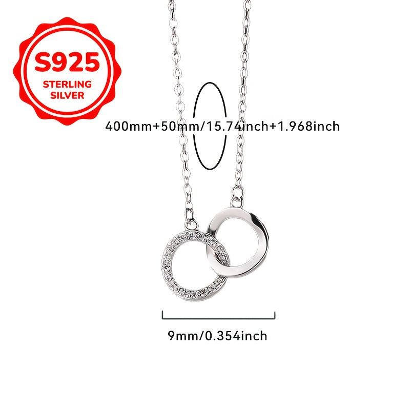 Elevate your style with this stunning pendant necklace featuring double ring round circle design adorned with sparkling cubic zirconia. Made of high-quality 2gS925 silver for a classic and advanced look.