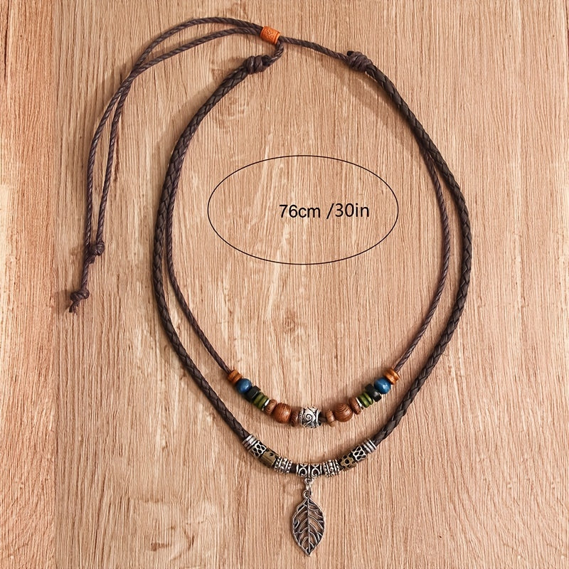Add a touch of nature-inspired charm to your outfit with this stylish PU leaf wooden bead necklace. Perfect for parties or as a thoughtful gift for a loved one.