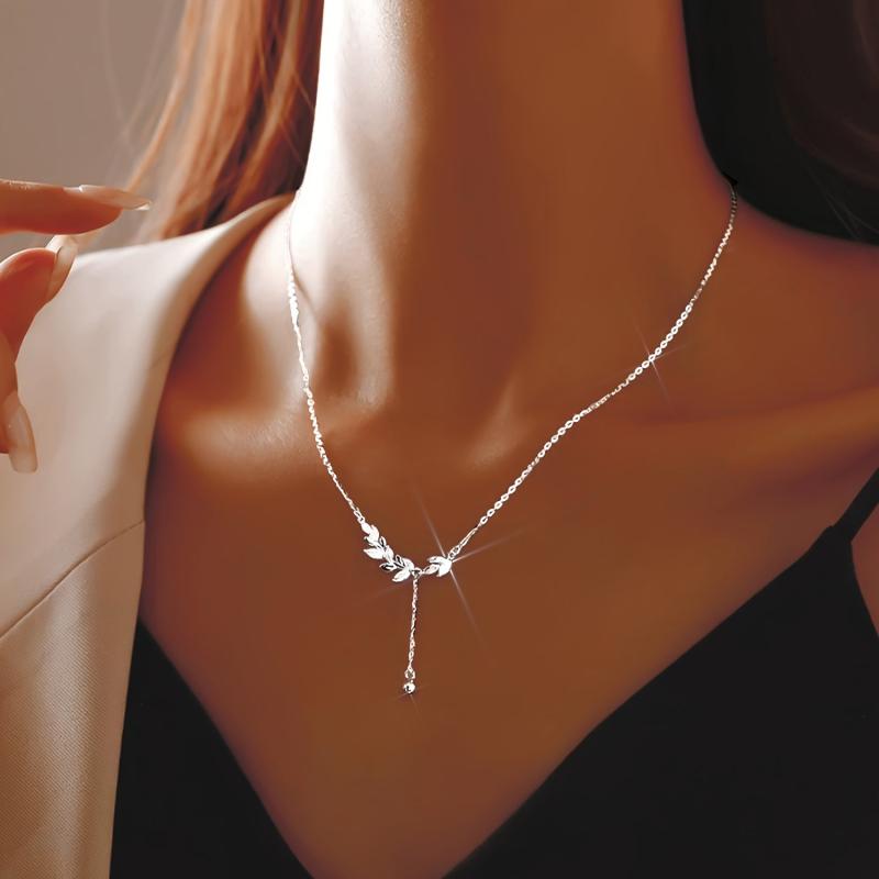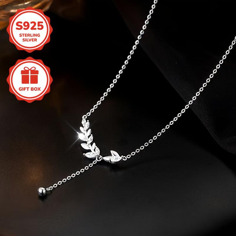 Elegant and luxurious S925 silver necklace featuring synthetic and cubic zirconia. Perfect for a high-end look.
