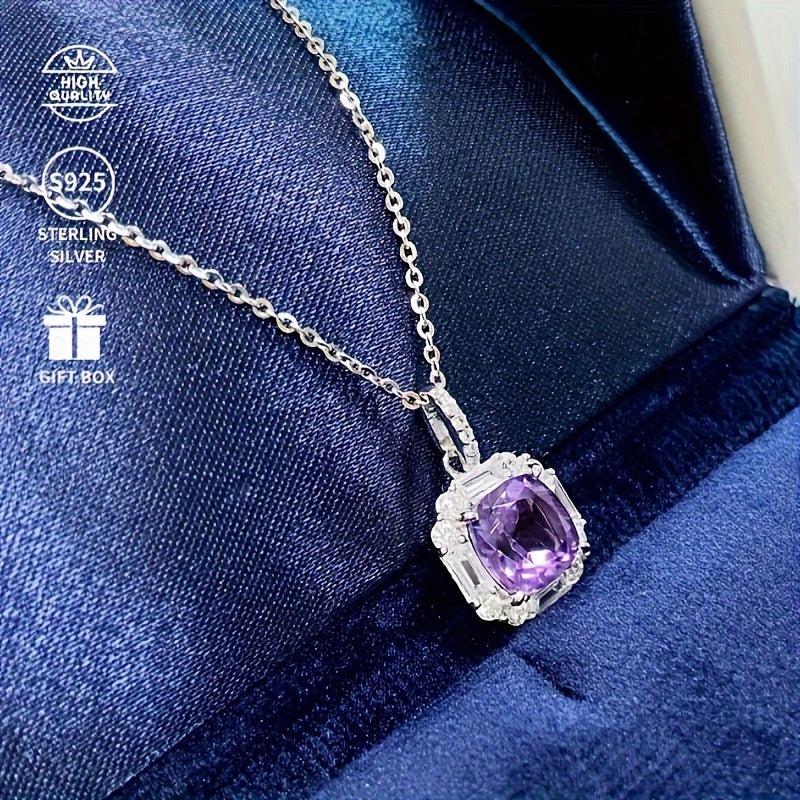 Elegant and retro design necklace with a purple natural stone pendant, made of S925 pure silvery material. Perfect for daily wear or as a special gift.