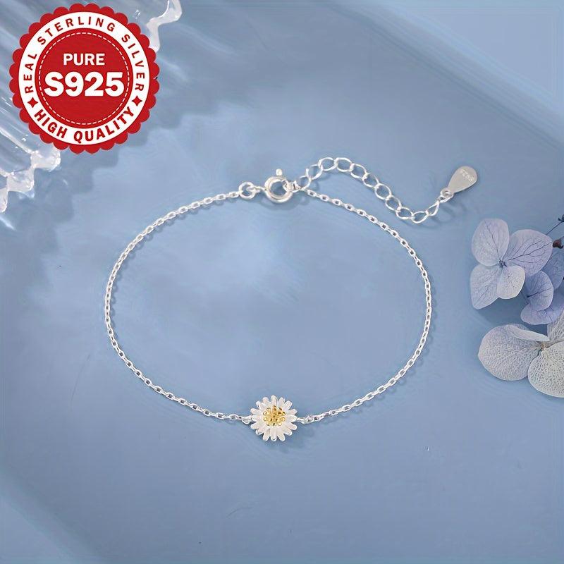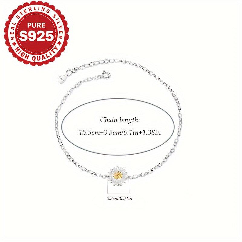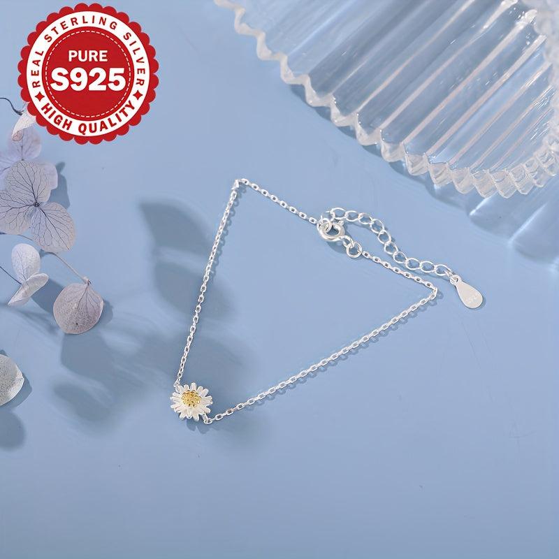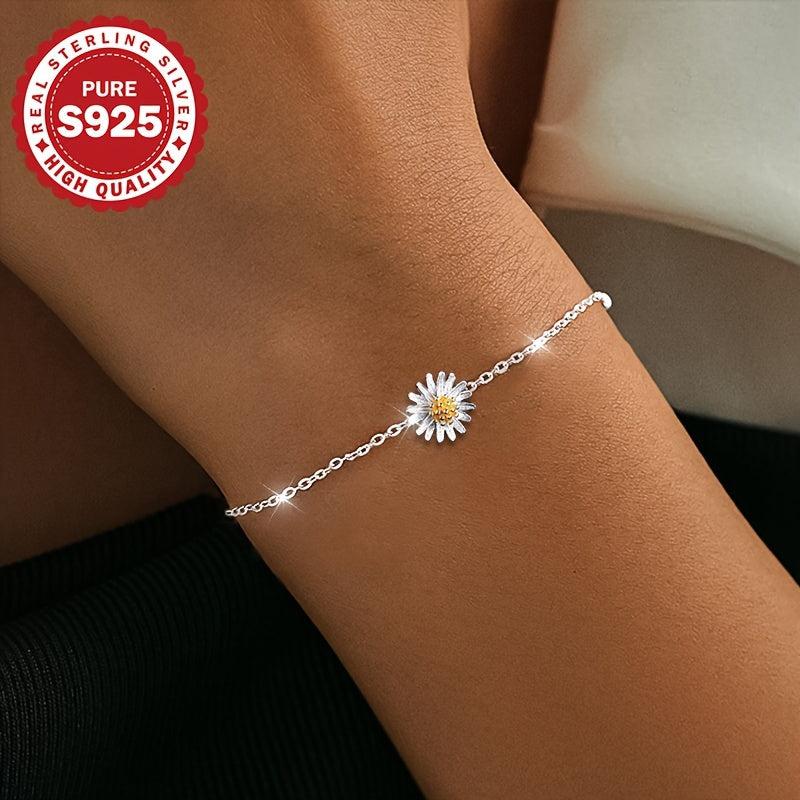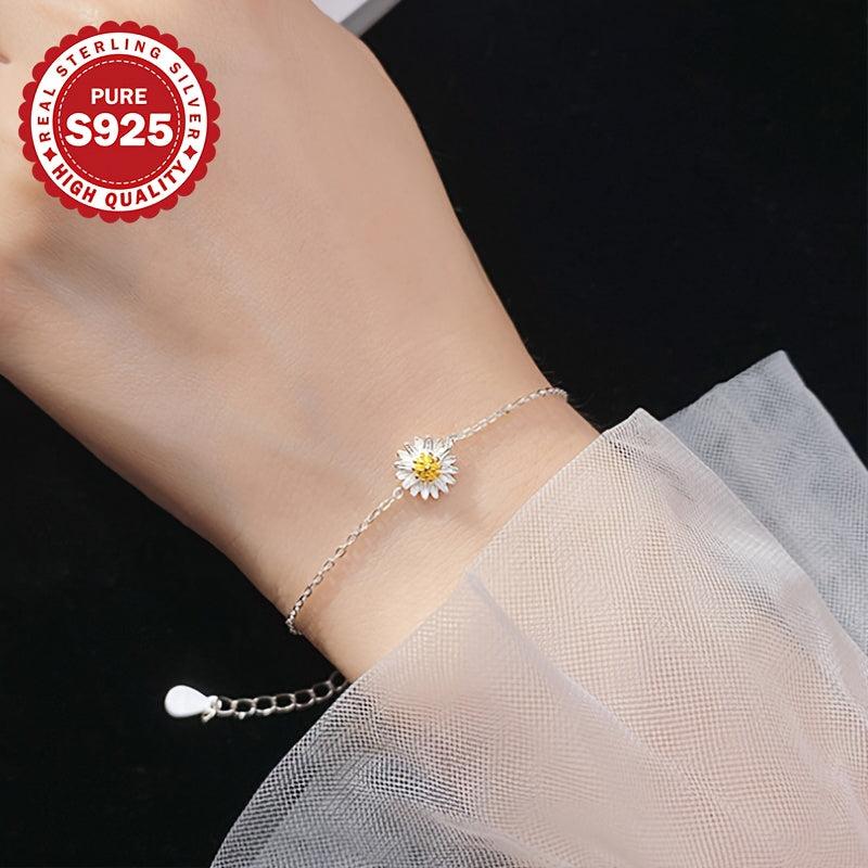 Elevate your daily look with this elegant S925 pure silver daisy bracelet. It adds a sweet and ladylike touch to any outfit, making it perfect for everyday wear.