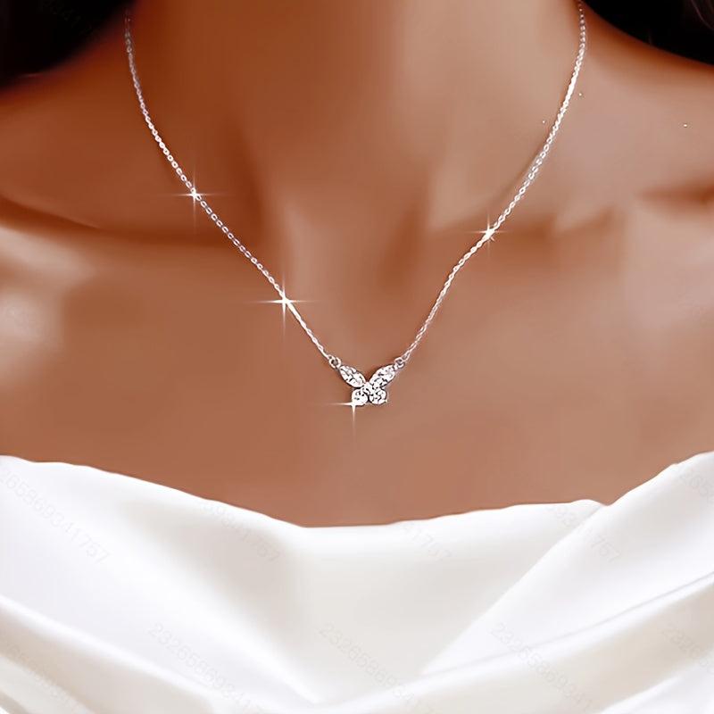 Elegant and high-end collarbone chain necklace featuring synthetic zirconia butterfly design. A perfect minimalist accessory for any occasion.