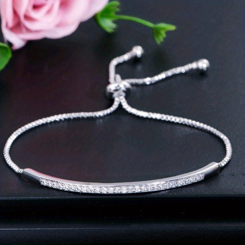 Elegant silver plated bracelet with cubic zircon stones. Perfect for engagement, wedding, anniversary or everyday wear.
