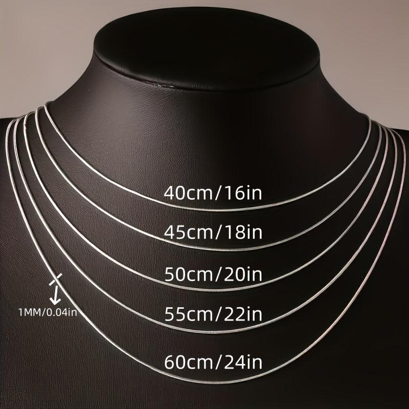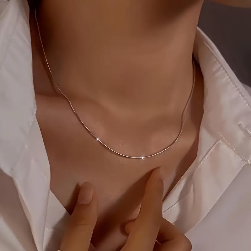 This sleek snake chain necklace is a versatile accessory that can be worn year-round. Its minimalist design and metallic finish make it suitable for everyday wear or special occasions.