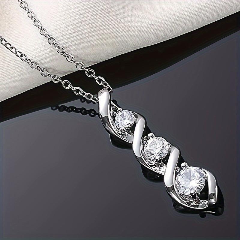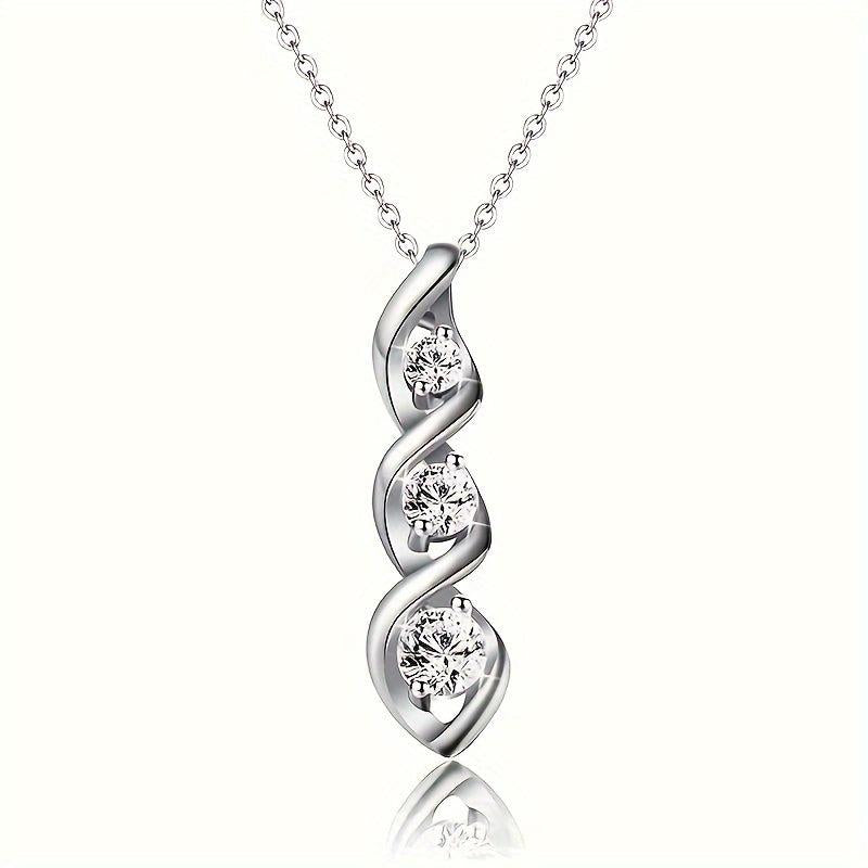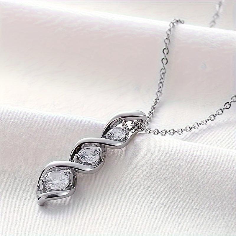Elevate your look with this pendant necklace featuring a rotating spiral design adorned with synthetic zirconia. Perfect for everyday wear, parties, and weddings.