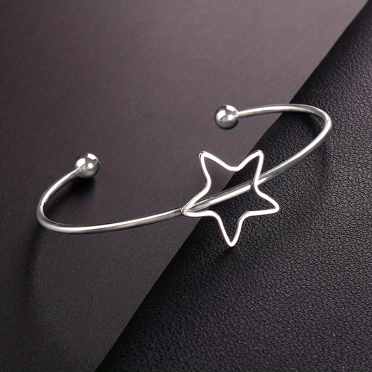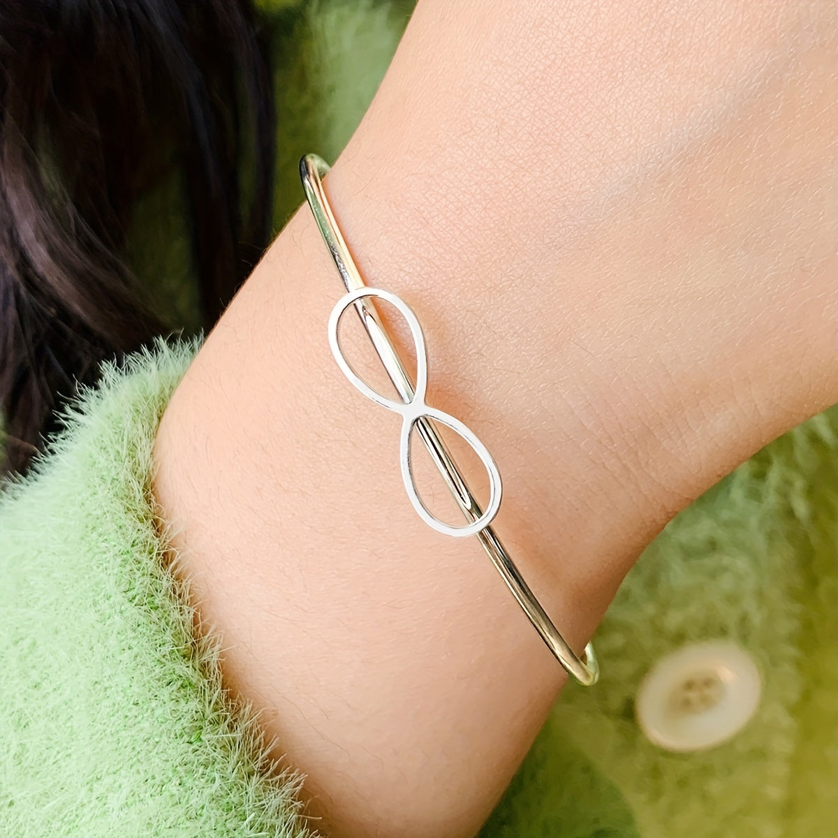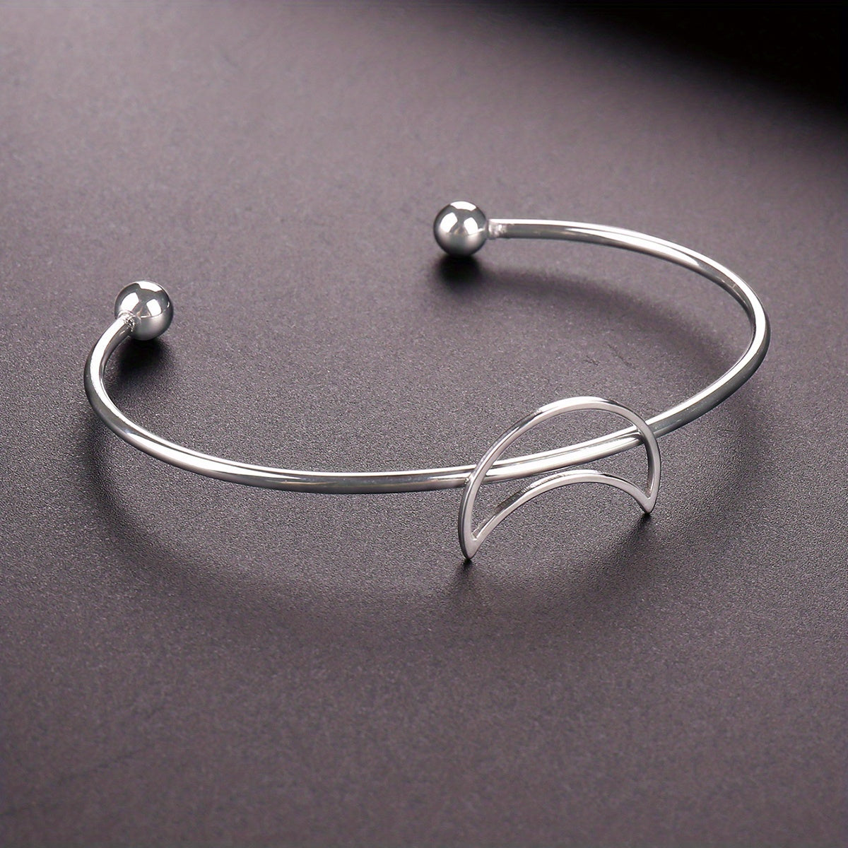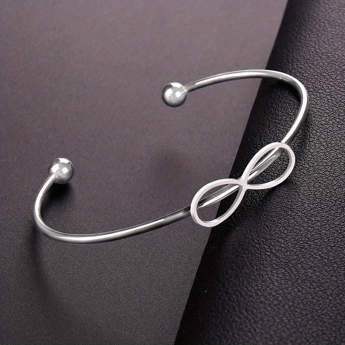This stylish cuff bangle features an infinity symbol, star, and moon charm design. Made of stainless steel, this piece makes a perfect birthday gift for women.