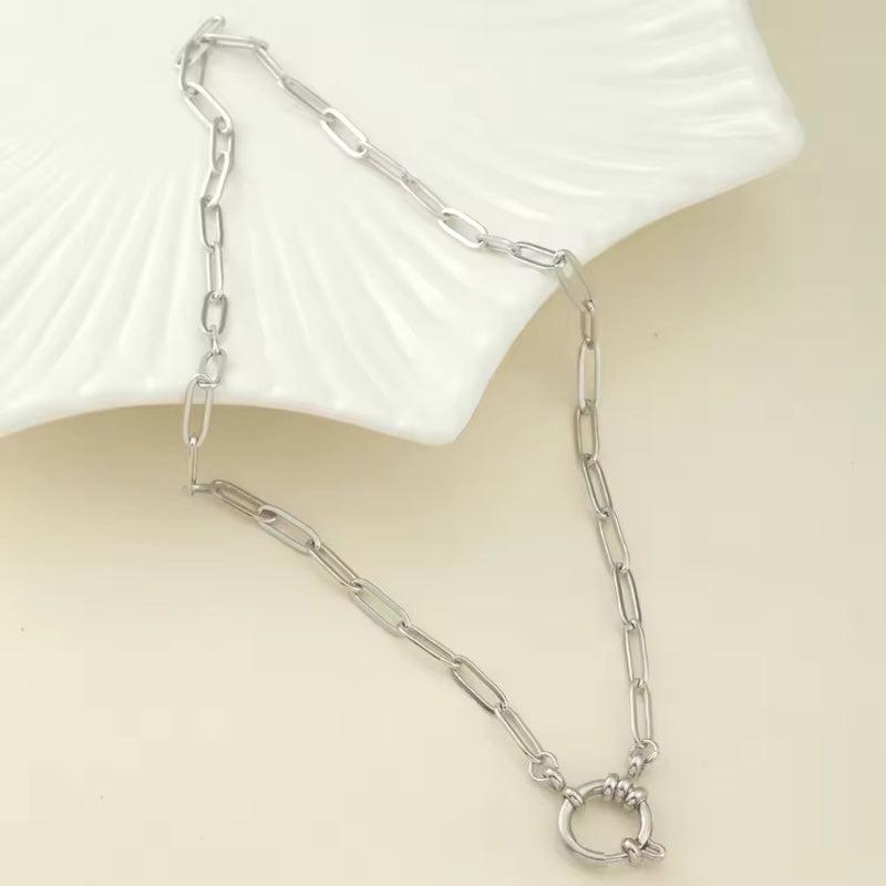 Elevate your casual attire with this minimalist stainless steel necklace featuring a spiral motif pendant. It's perfect for everyday wear and makes a great gift.