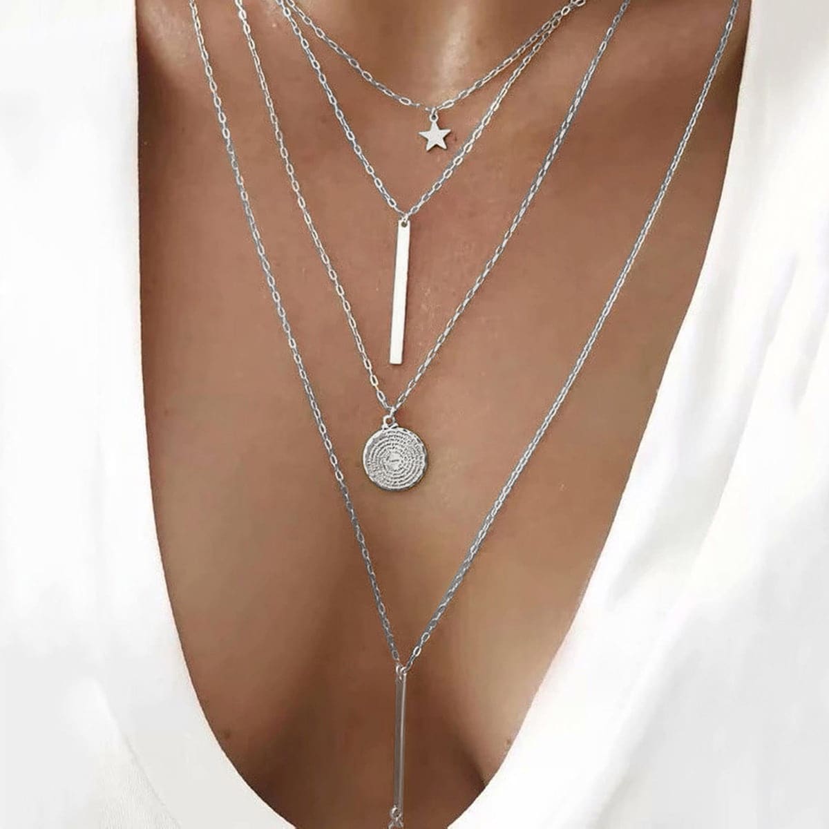 Add a touch of elegance to your outfit with this stunning star layer necklace. Made with high-quality 18K plated material, it is a perfect accessory for women.