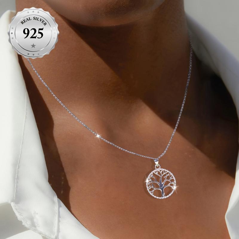 Celebrate holidays with this classic Tree of Life pendant necklace. Made of S925 silver, it's perfect for Thanksgiving, Christmas, Mother's Day, and more. Comes in a beautiful raffia gift bag.