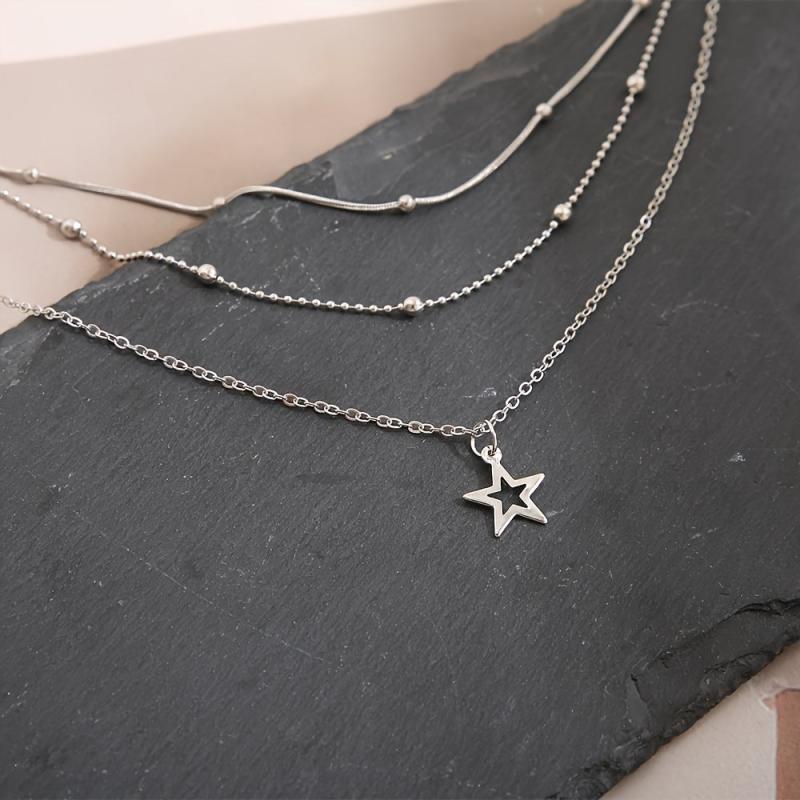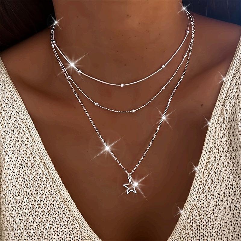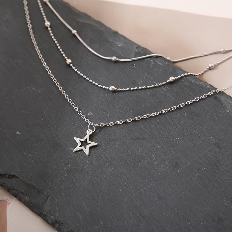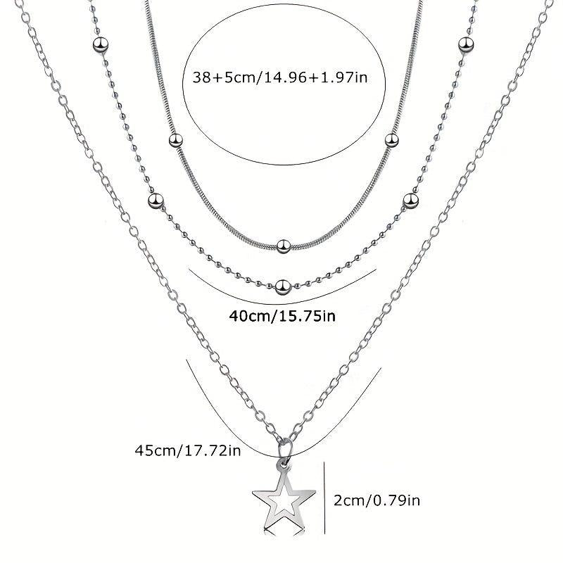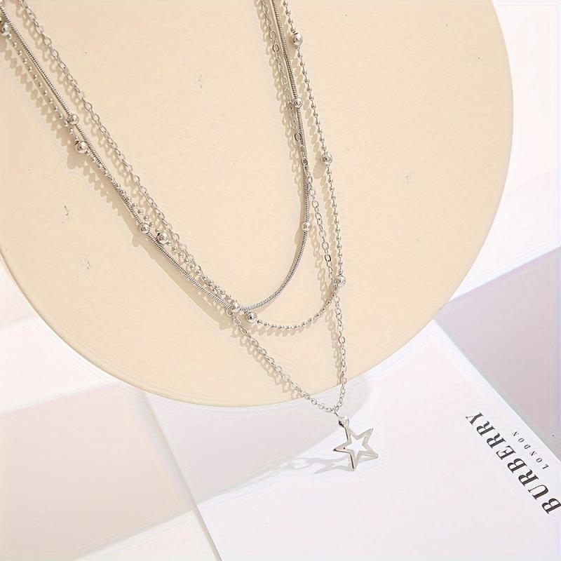 Add a touch of elegance to your outfit with this minimalist triple layer delicate beaded necklace featuring a geometric star pendant. Perfect for daily wear or special occasions, this versatile accessory is a must-have year-round jewelry piece.