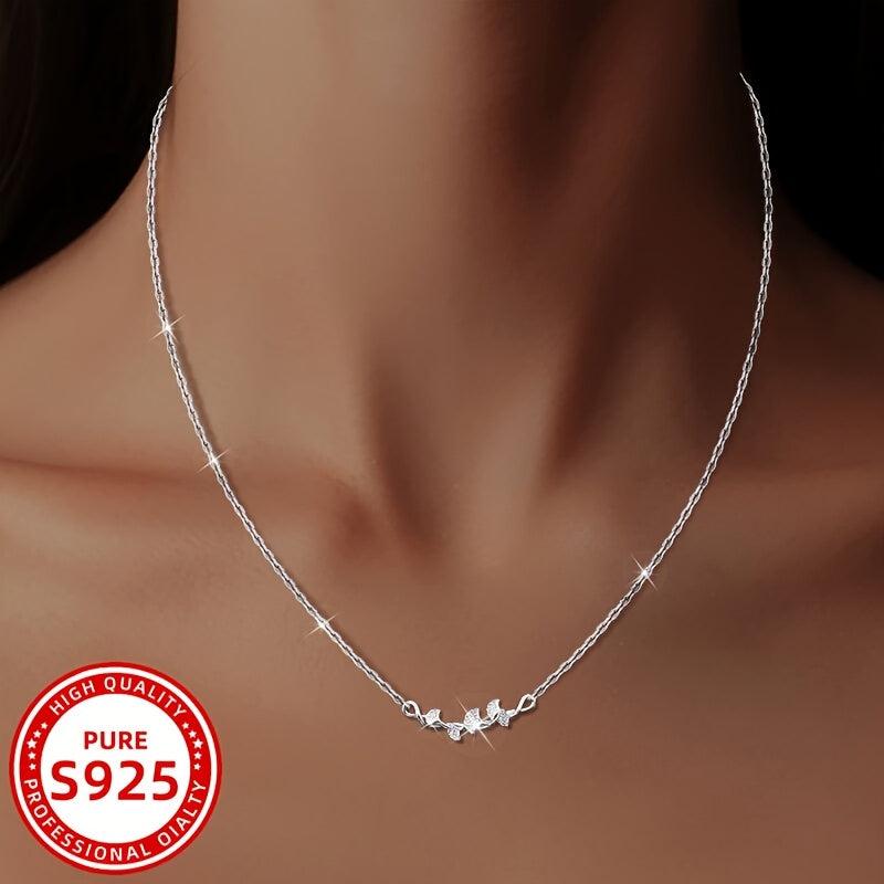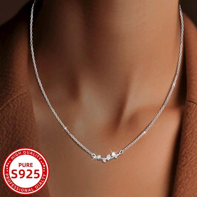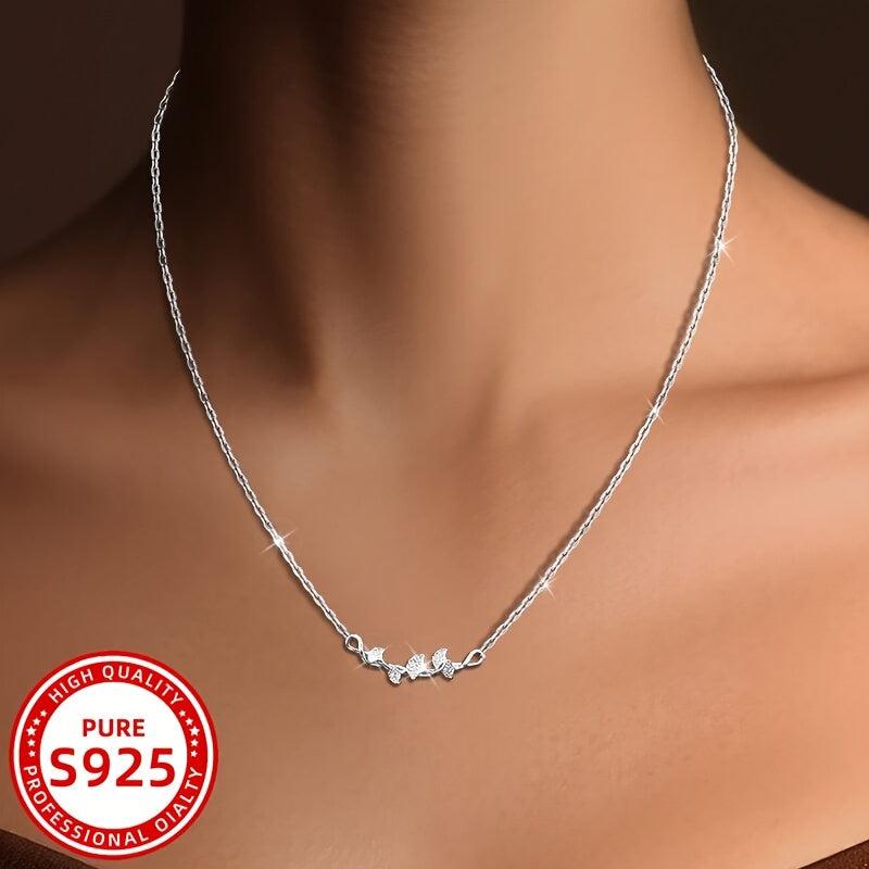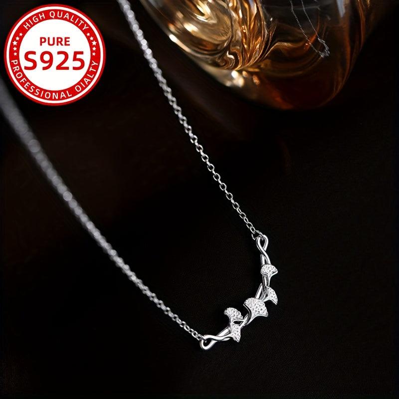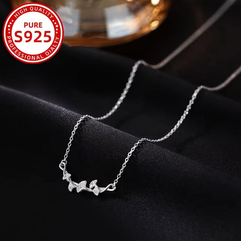 This necklace is a perfect accessory for daily wear or as a holiday gift. It features a vintage ginkgo leaf pendant and is made of 925 silver.