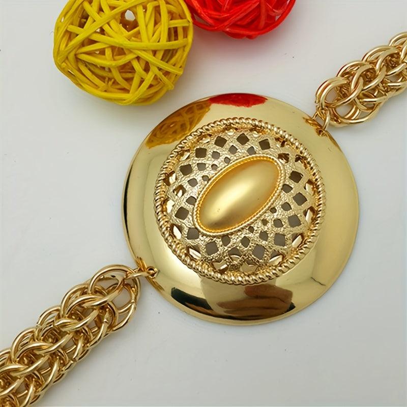 Complete your wedding look with this elegant jewelry set that includes a necklace, earrings, ring, and bracelet. Perfect for special occasions.