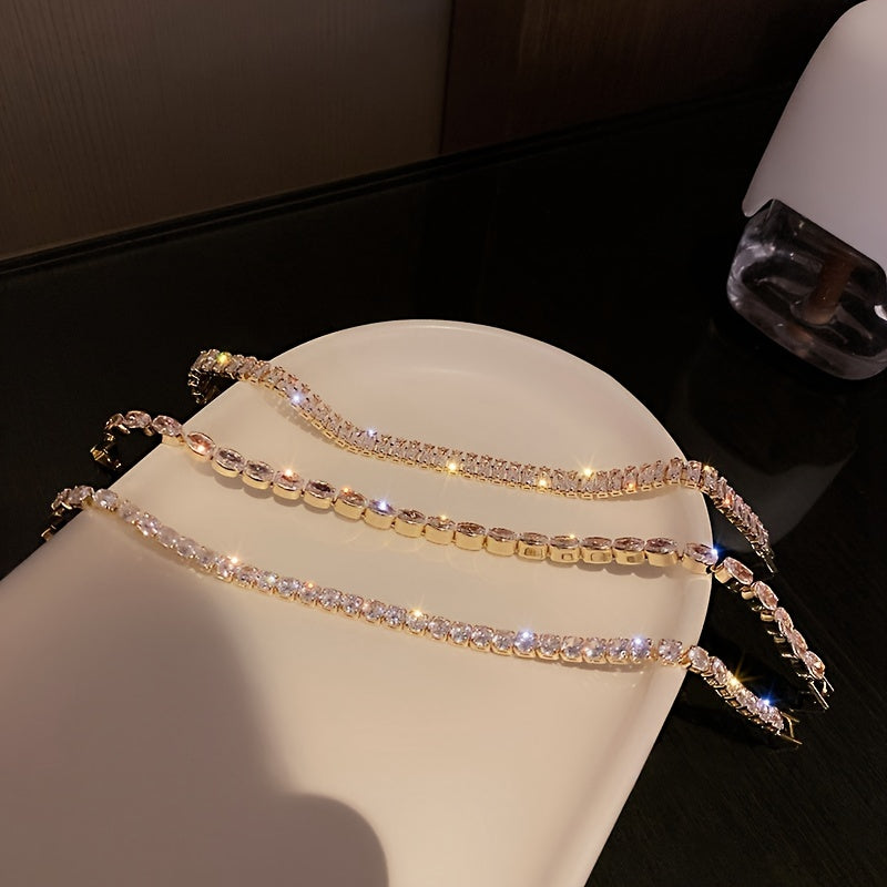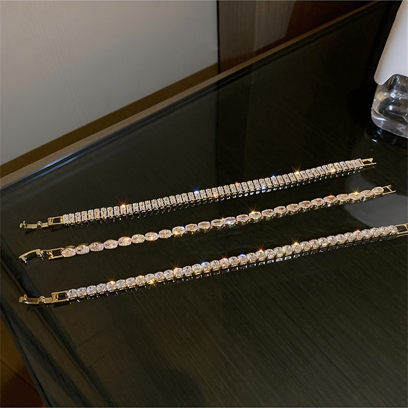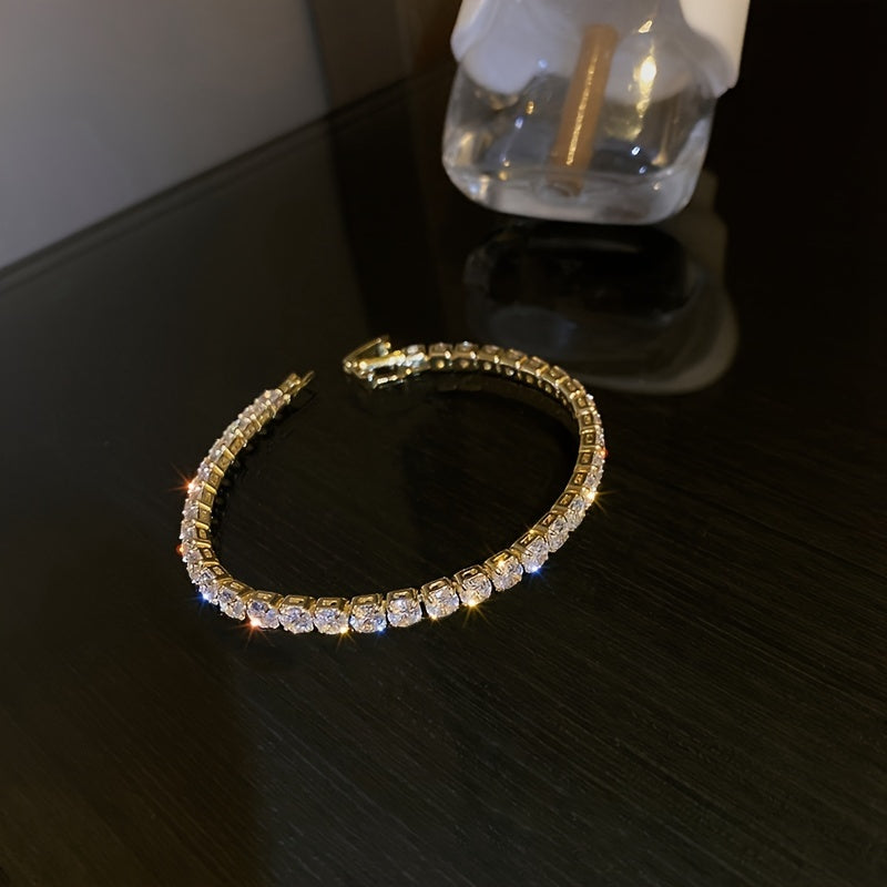 Elegant zircon tennis bracelet perfect for weddings and special occasions. This hand chain accessory adds a touch of sophistication to your ensemble.