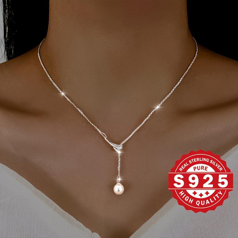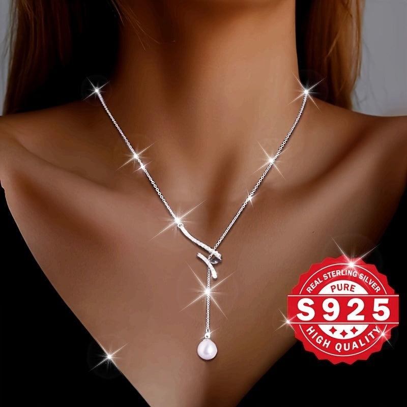 This Y-shaped necklace is a stunning piece made of S925 sterling silver with a 6mm bead inlay. It is perfect for adding a unique and sexy charm to your evening wear or a special Christmas gift. The design is elegant and hypoallergenic to ensure comfort and style.