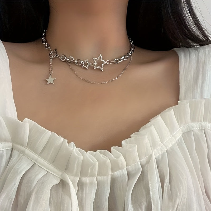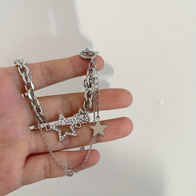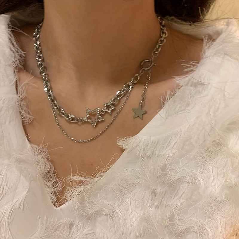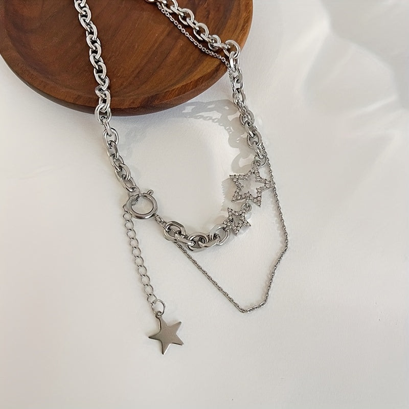 Add a stylish touch to your look with this retro punk tassel pendant necklace featuring double layers and zircon star accents.