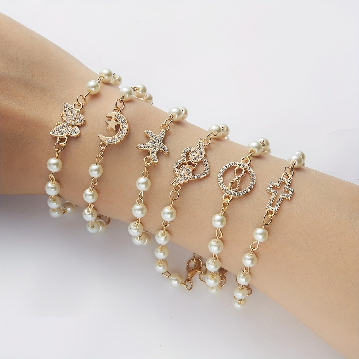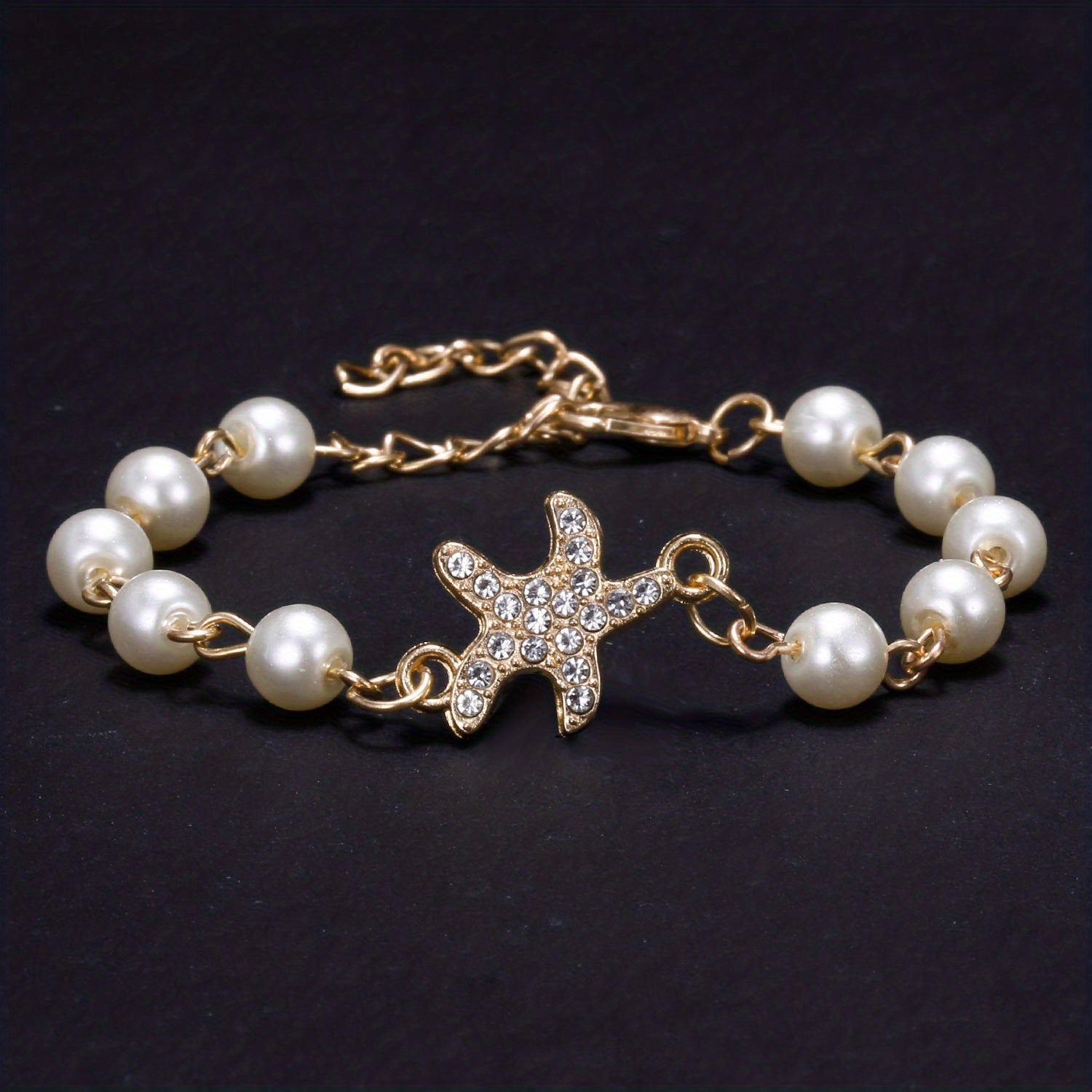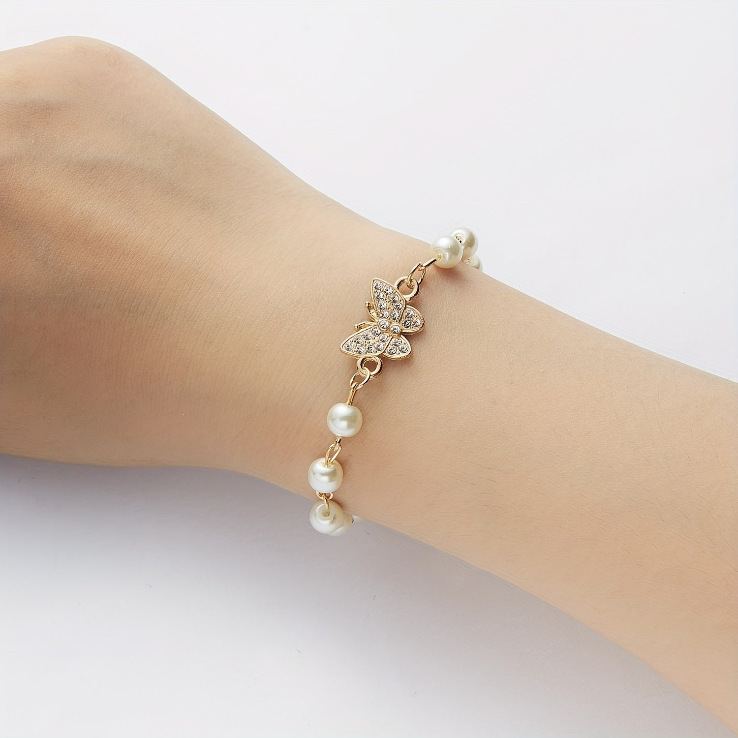 Add a touch of elegance with this adjustable hand jewelry featuring faux pearls on a delicate chain bracelet. Perfect for any occasion.