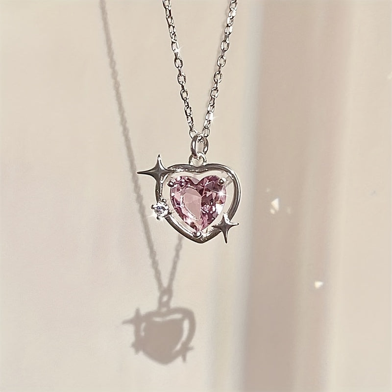 Add a touch of romance to your outfit with this stylish pendant necklace. Perfect for weddings or everyday wear, this pink crystal heart necklace will surely make a statement.