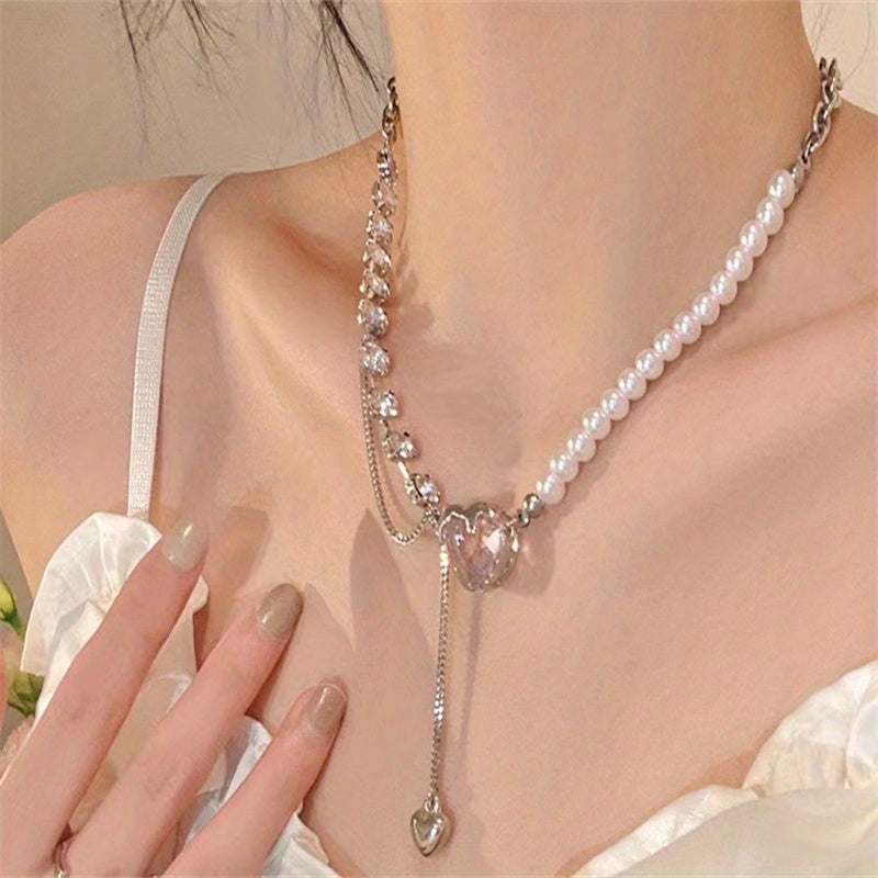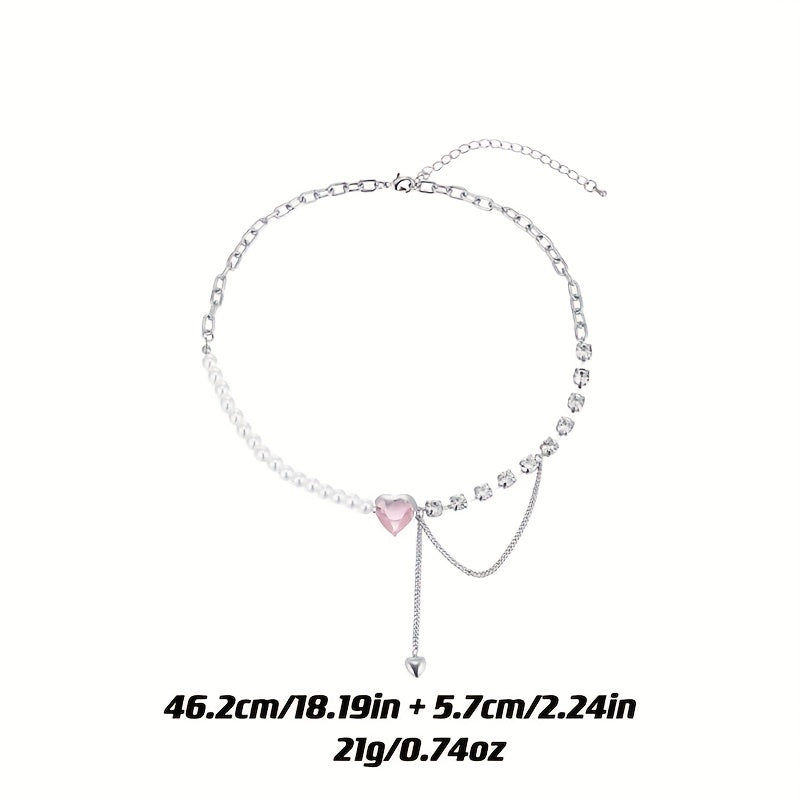 Add a touch of elegance to your look with this Y2K faux pearl necklace featuring love heart stitching. Perfect for female accessories.
