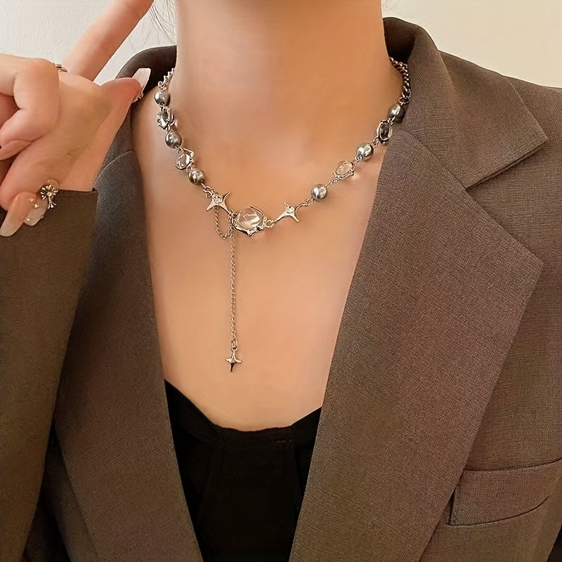Elevate your party look with this stunning Moonstone tassel necklace. Perfect accessory for any occasion!