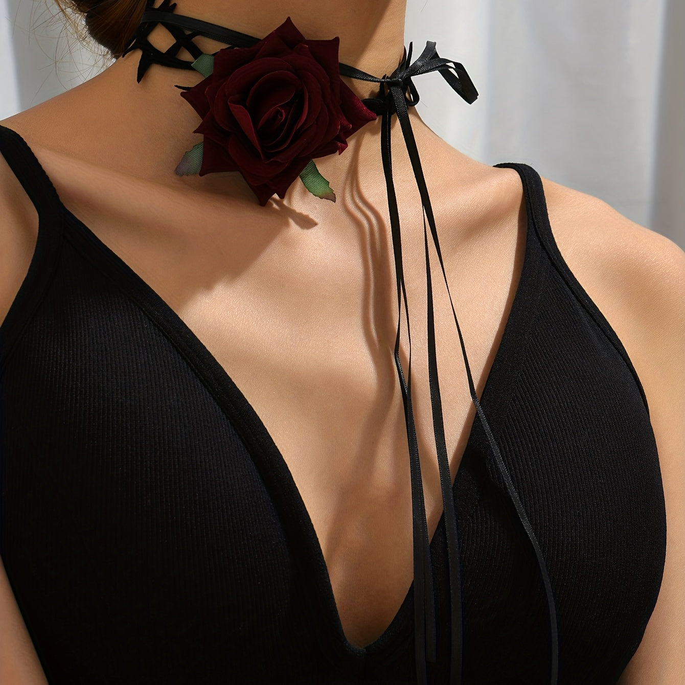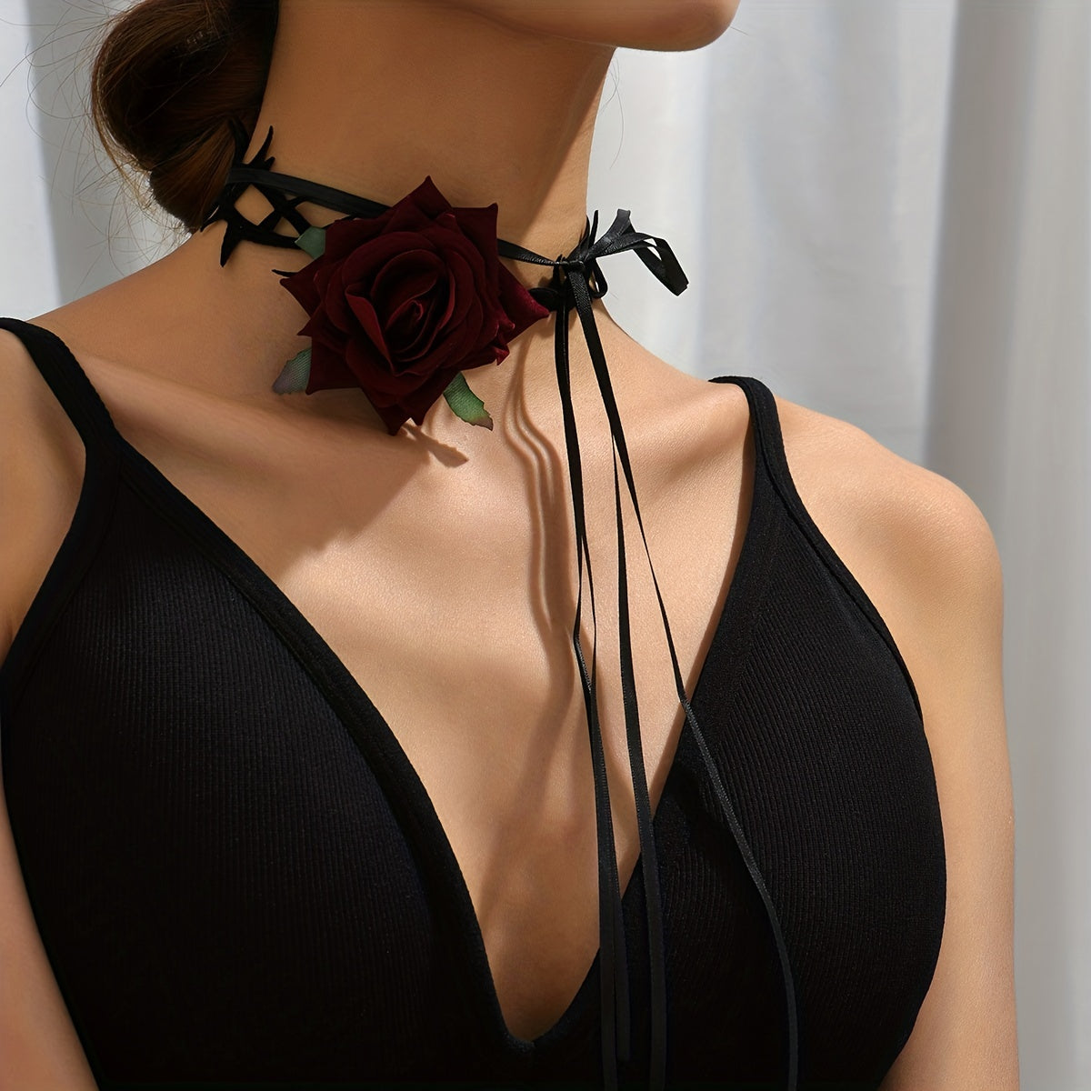 Add a touch of gothic style to your outfit with this vintage strap adjustable choker featuring a beautiful rose flower ornament.