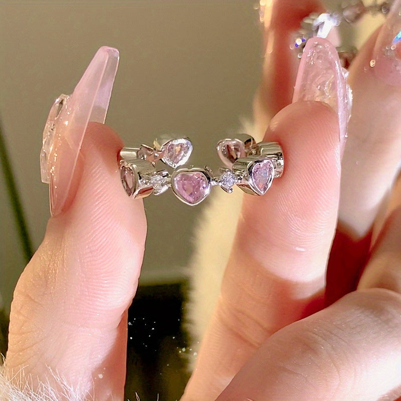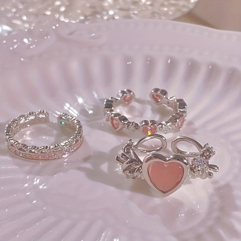Add a touch of glam with these Y2k stackable rings featuring inlaid rhinestones and a lovely pink color. Perfect for parties and special occasions, these rings are a sweet birthday or Christmas gift for girls.