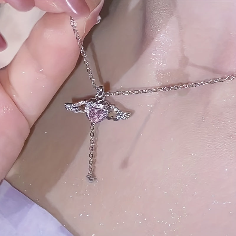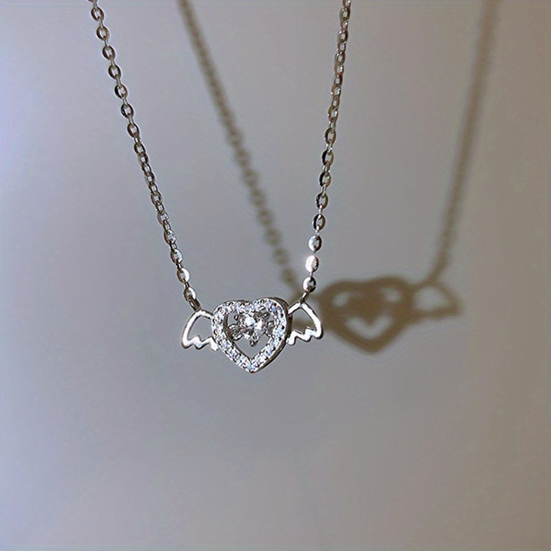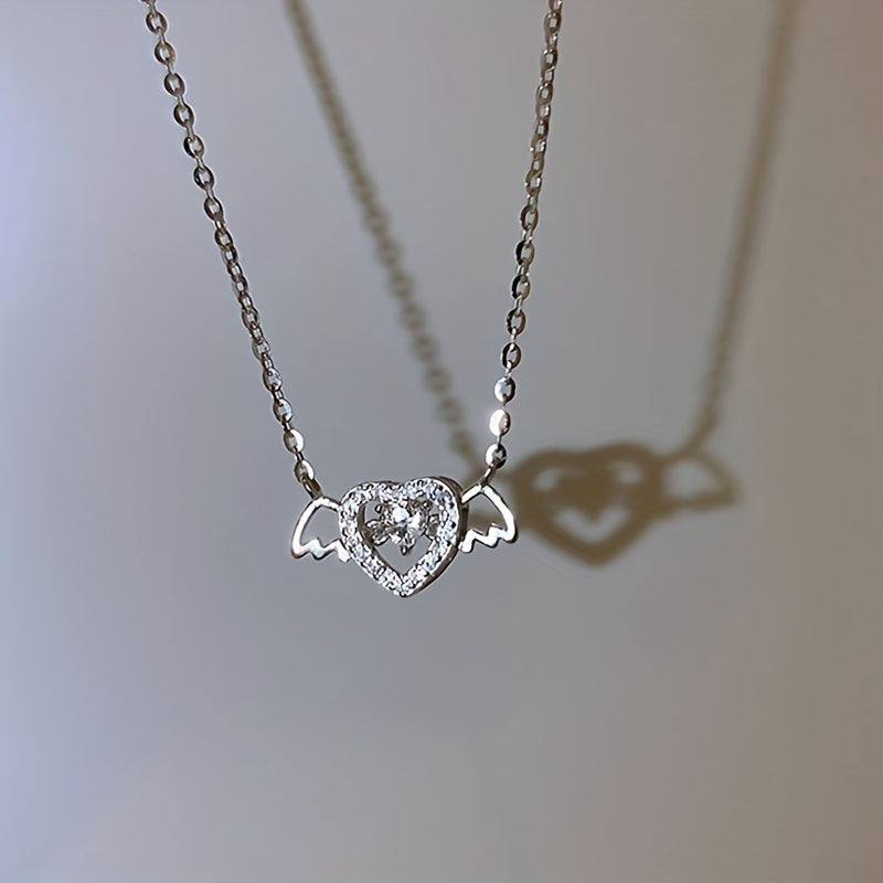 Beautiful necklace featuring a heart angel wings pendant with inlaid zircon crystals, perfect for women and girls who love unique accessories.