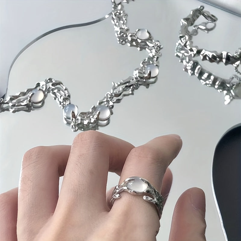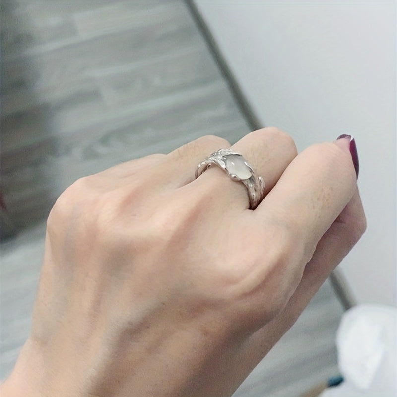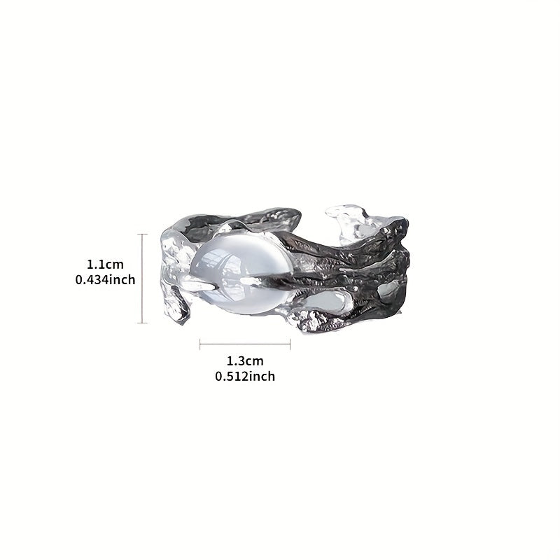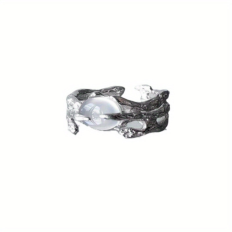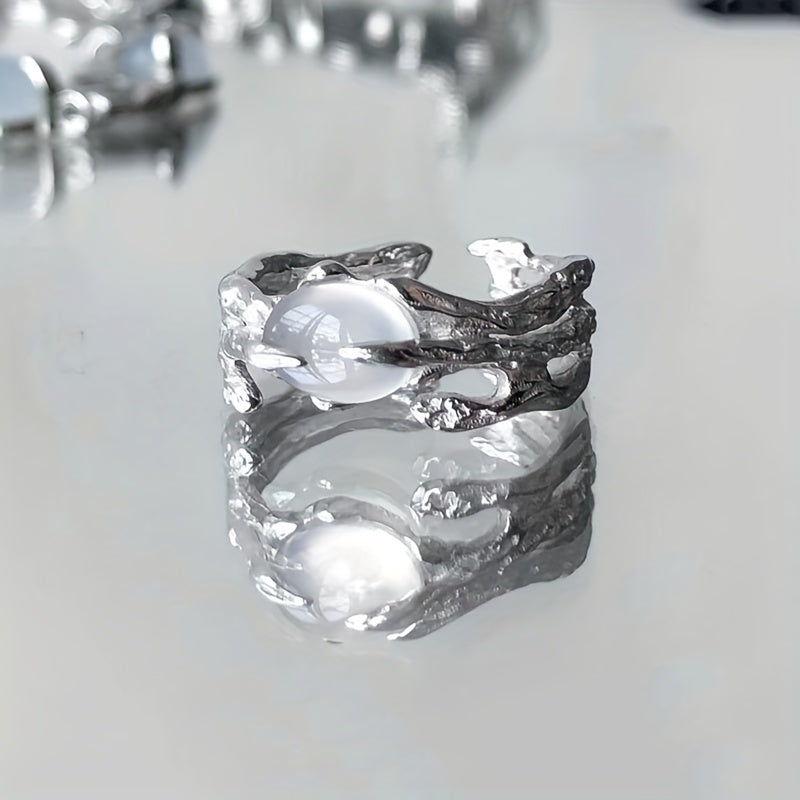 Add a touch of Y2K style to your look with this hollow out finger ring featuring a beautiful moonstone inlay. The ring is adjustable to fit any finger size.