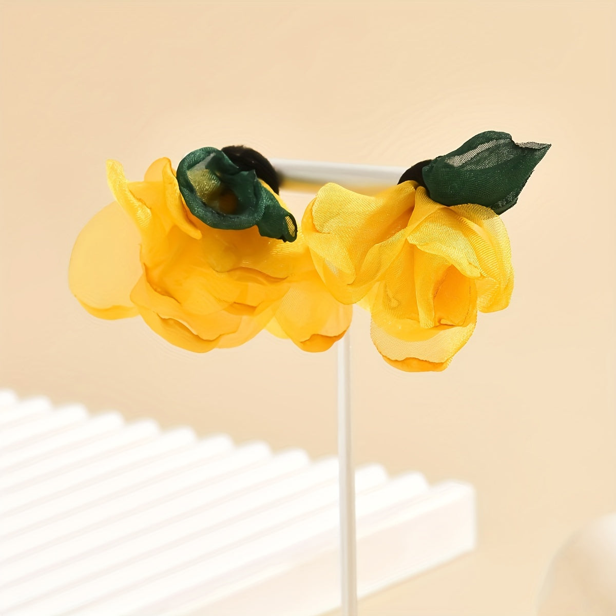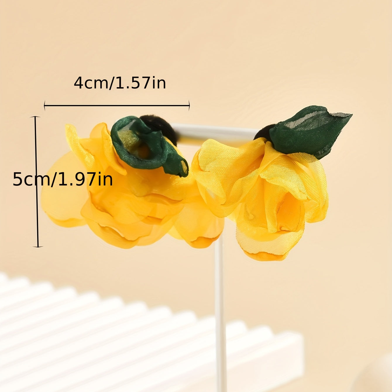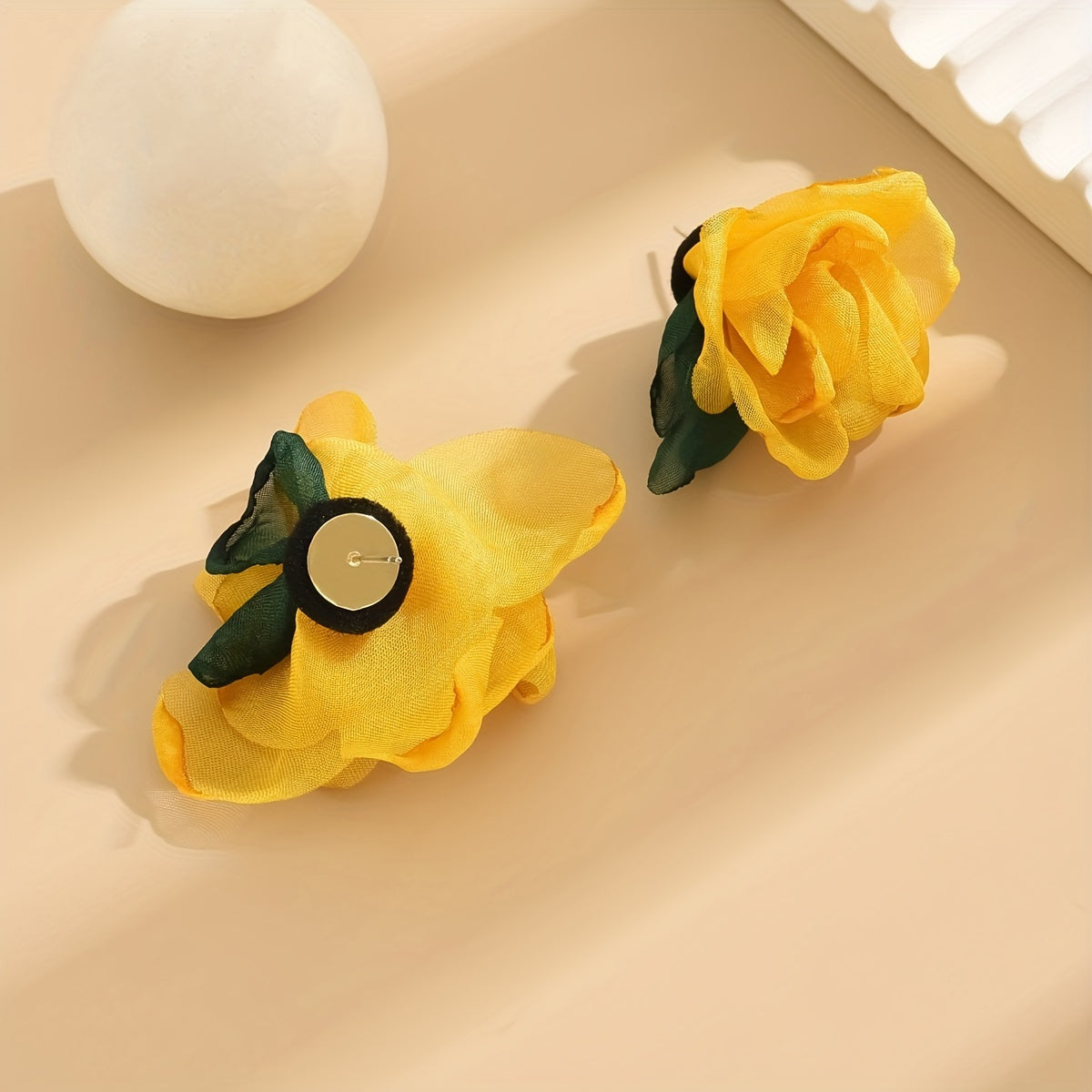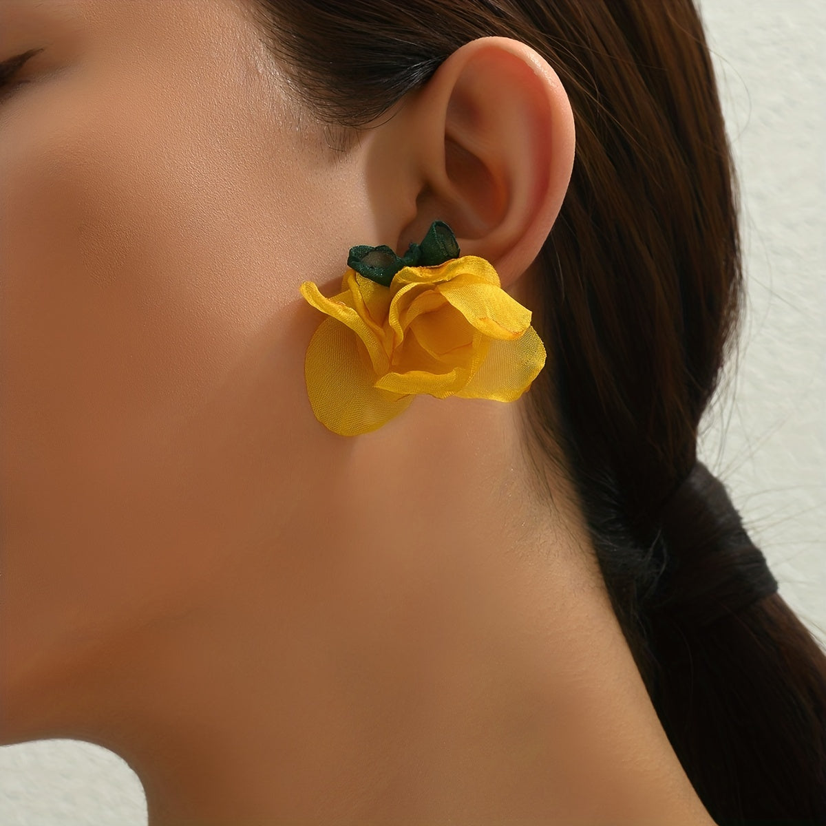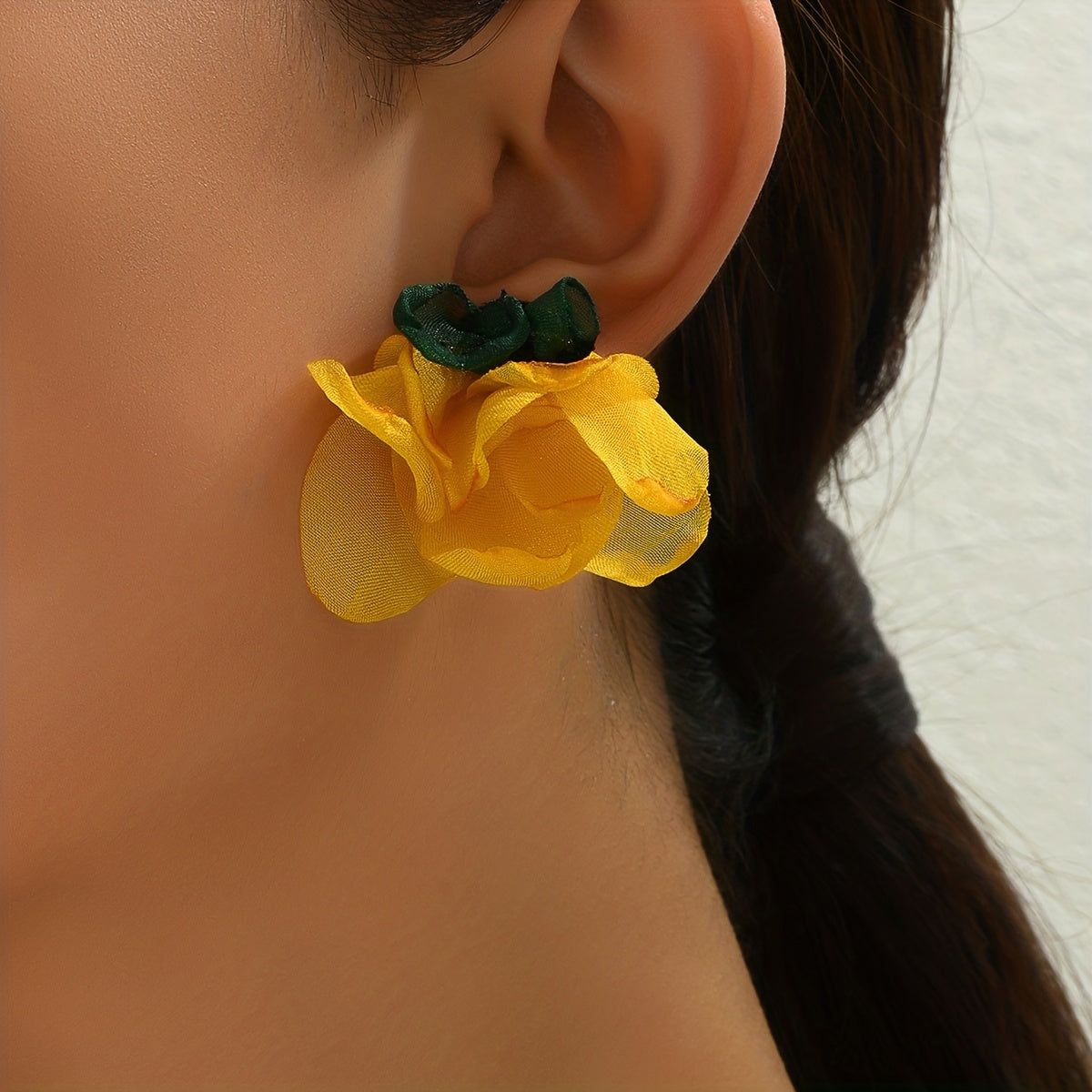 These vibrant yellow fabric flower earrings are perfect for adding a touch of ethnic style to any outfit. They make a great gift for women and girls. Ideal for wearing on vacation or as everyday ornaments.
