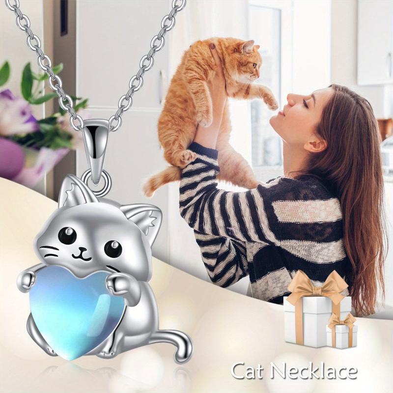 This elegant cat necklace features a moonstone pendant, making it a perfect gift for mothers, daughters, and sisters. Crafted from sterling silver, it is a beautiful accessory for any occasion.