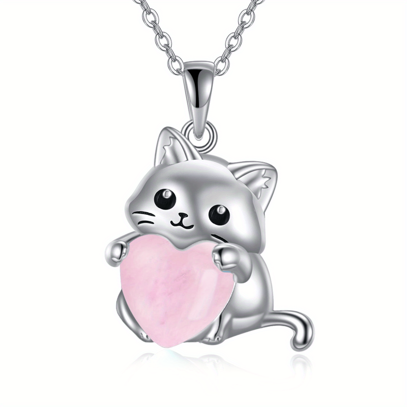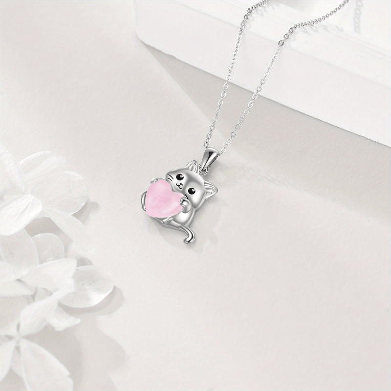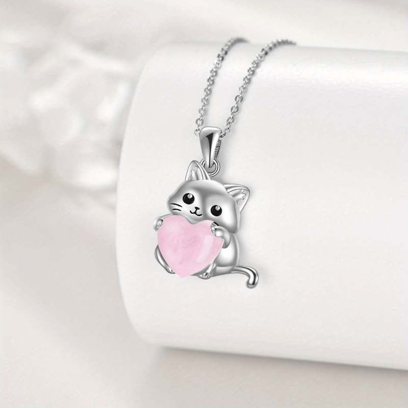 Adorn yourself with this elegant YFN Sterling Silver Cat Pendant Necklace featuring a beautiful rose quartz gemstone. A perfect Irish jewelry piece for women.