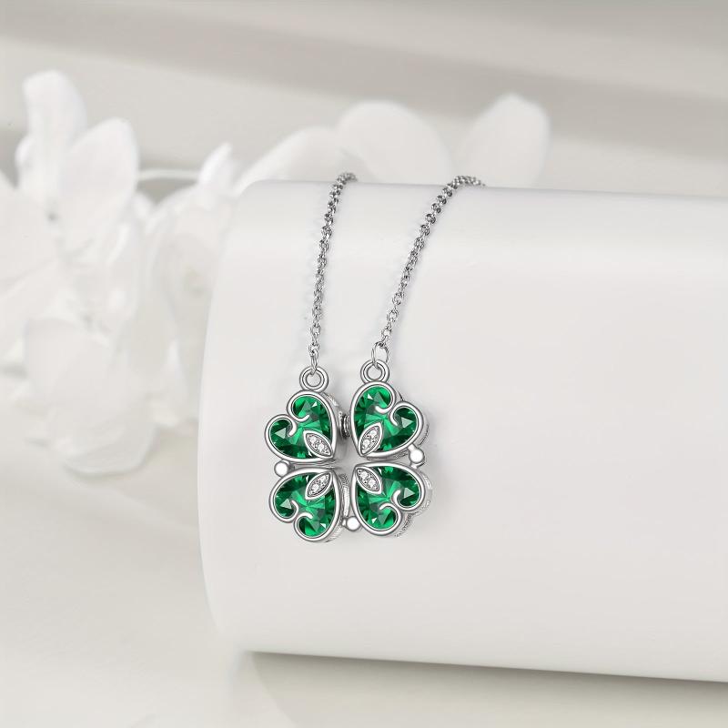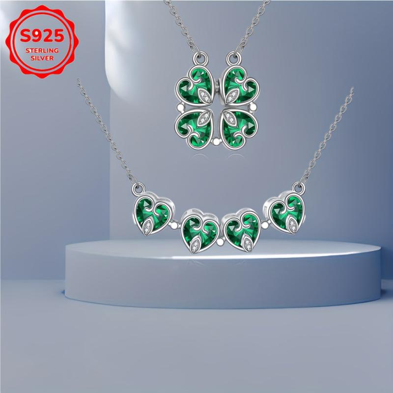 This elegant necklace features a sterling silver four leaf clover pendant with a heart-shaped moonstone that can be converted for versatile styling options.