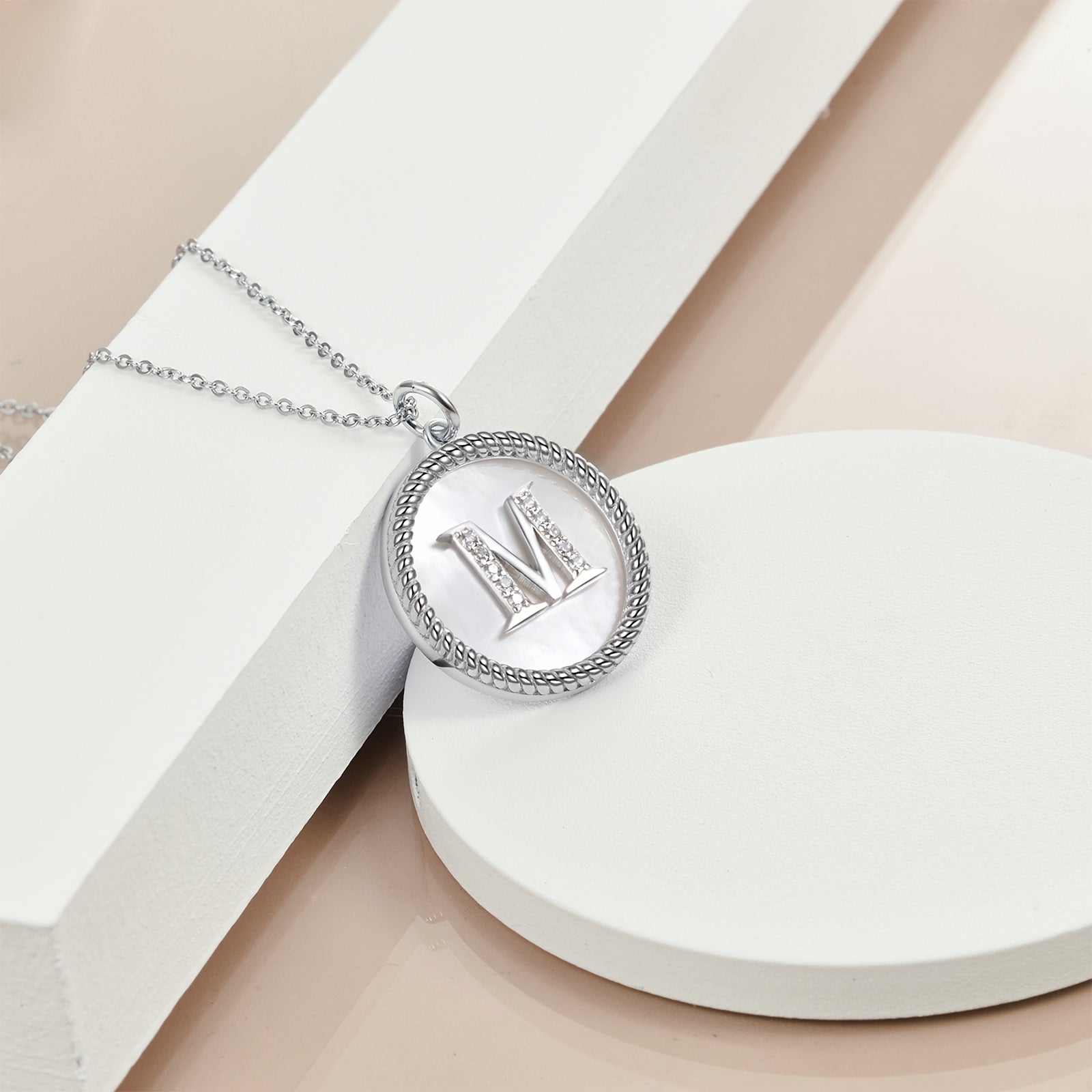 This personalized necklace features a stunning shell pendant and sparkling cubic zirconia. Crafted from sterling silver, this piece is perfect for women and girls.
