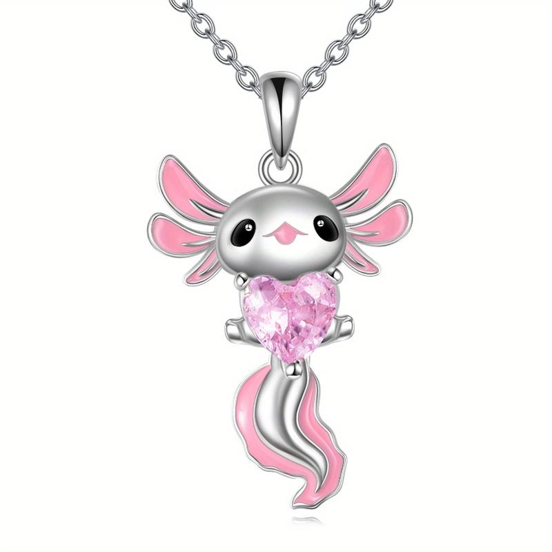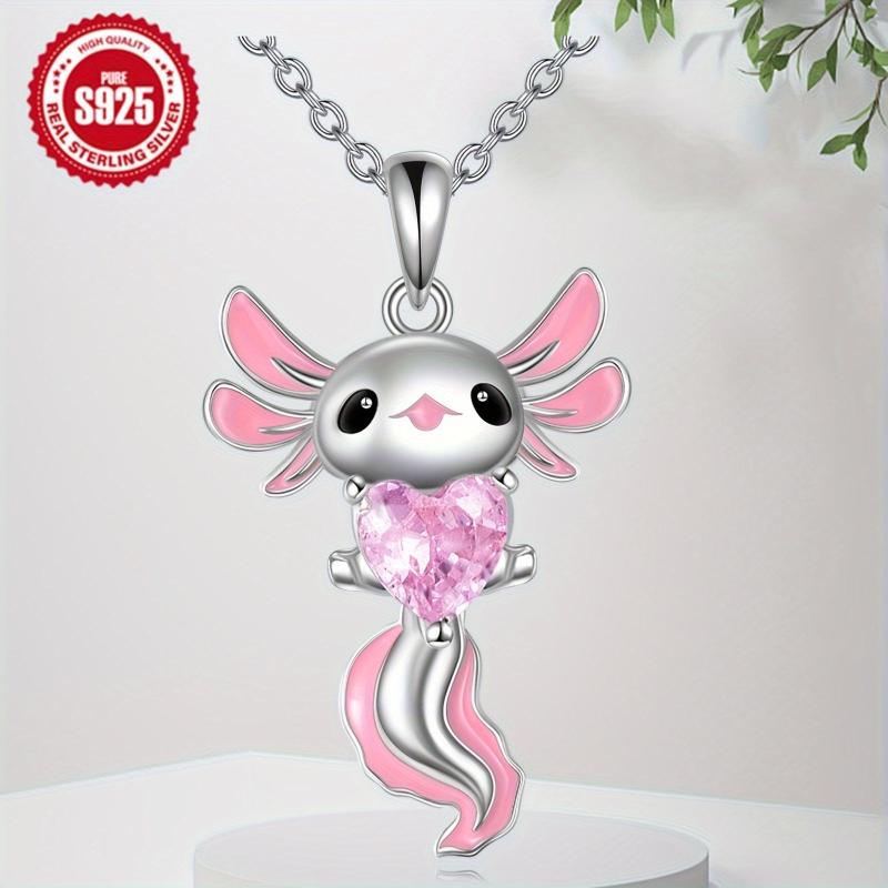 This YFN pendant necklace features a heart shaped pink synthetic stone set in a classic style animal design. It is made of 925 sterling silver and is the perfect gift for women for daily wear.
