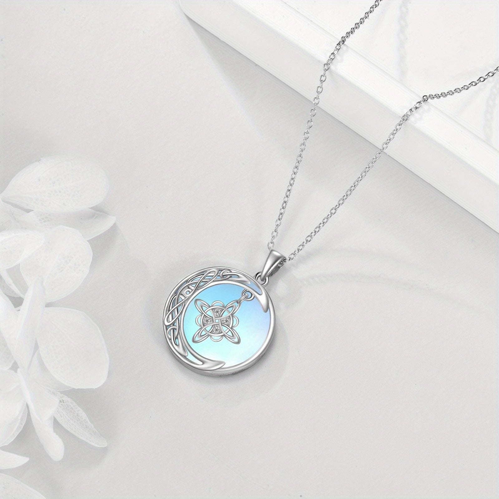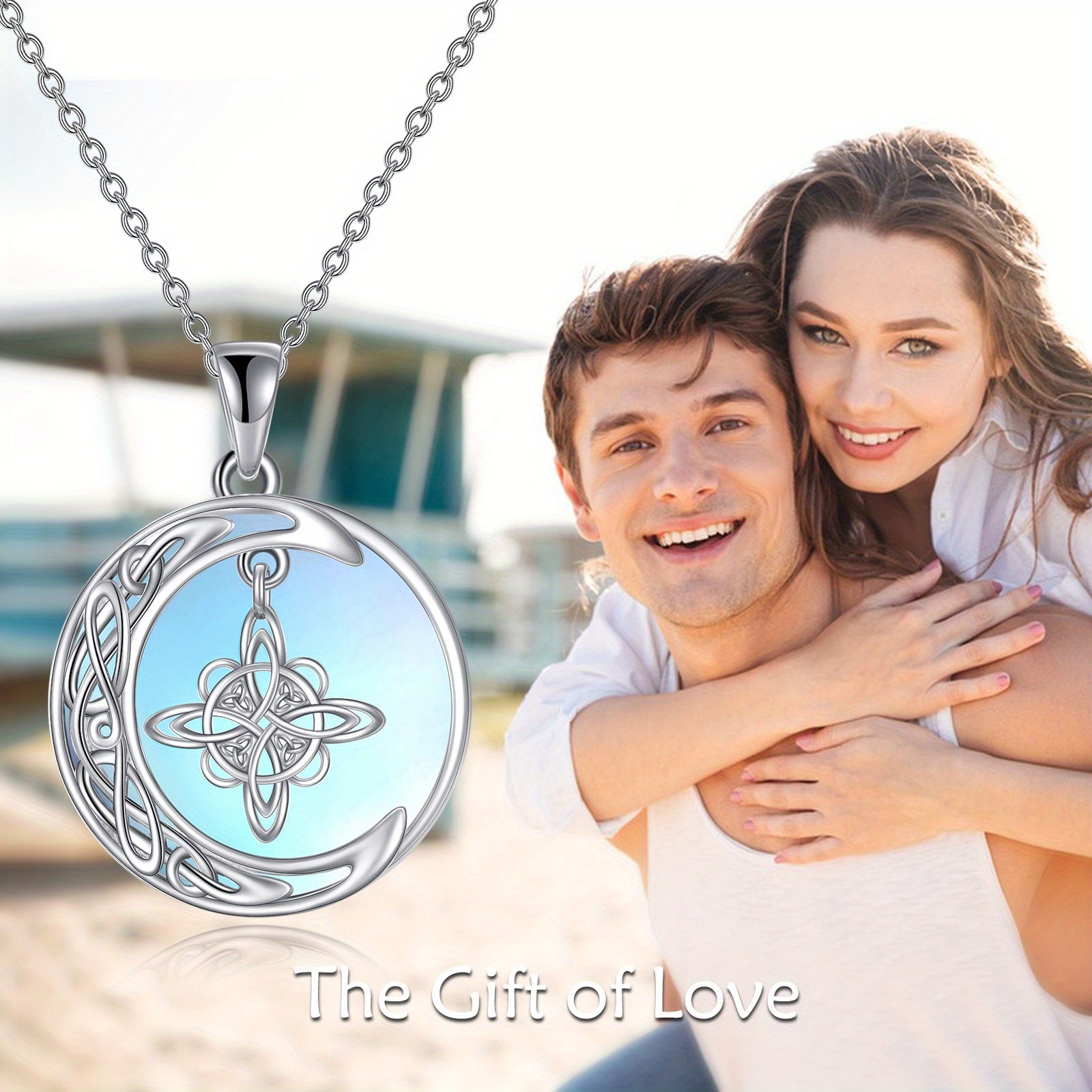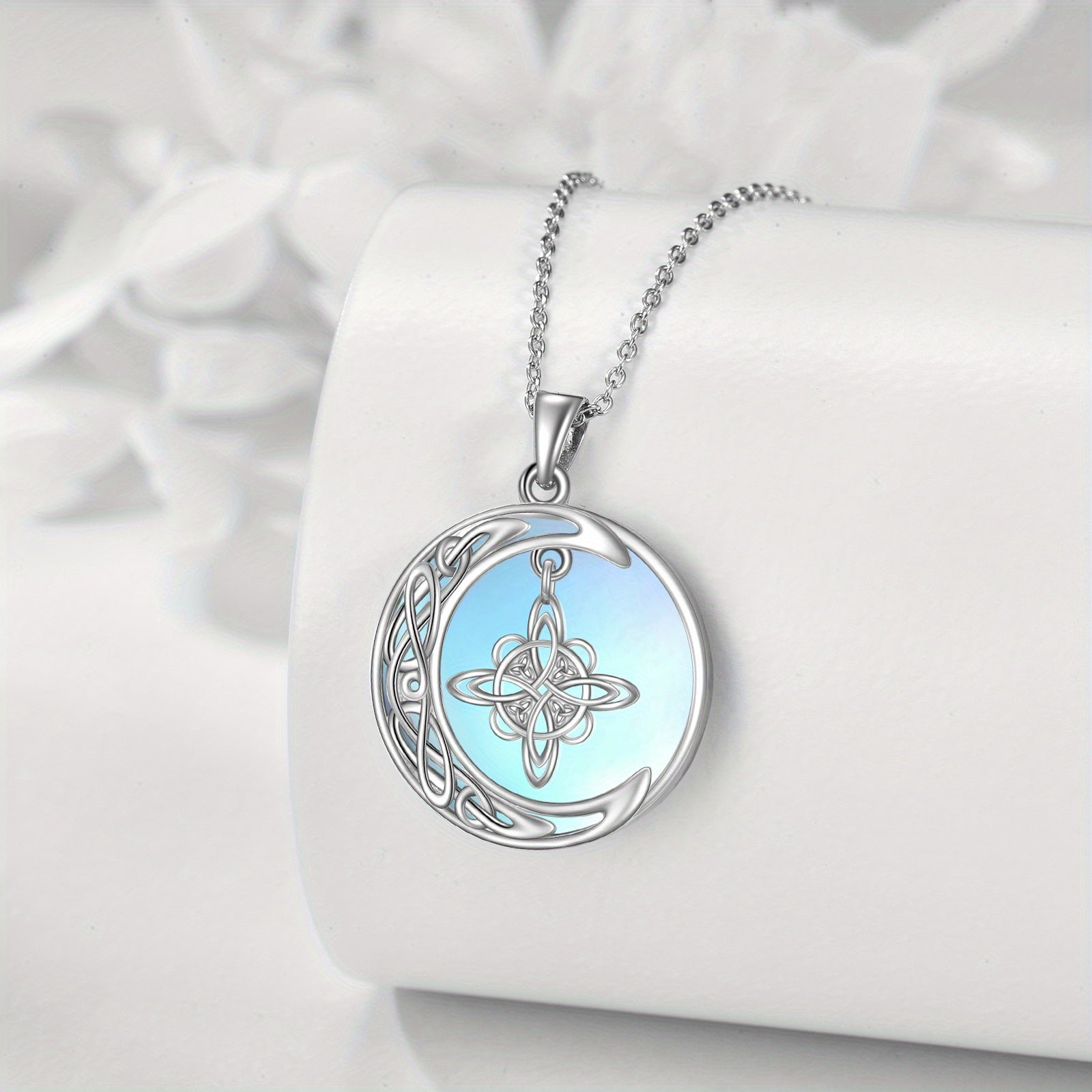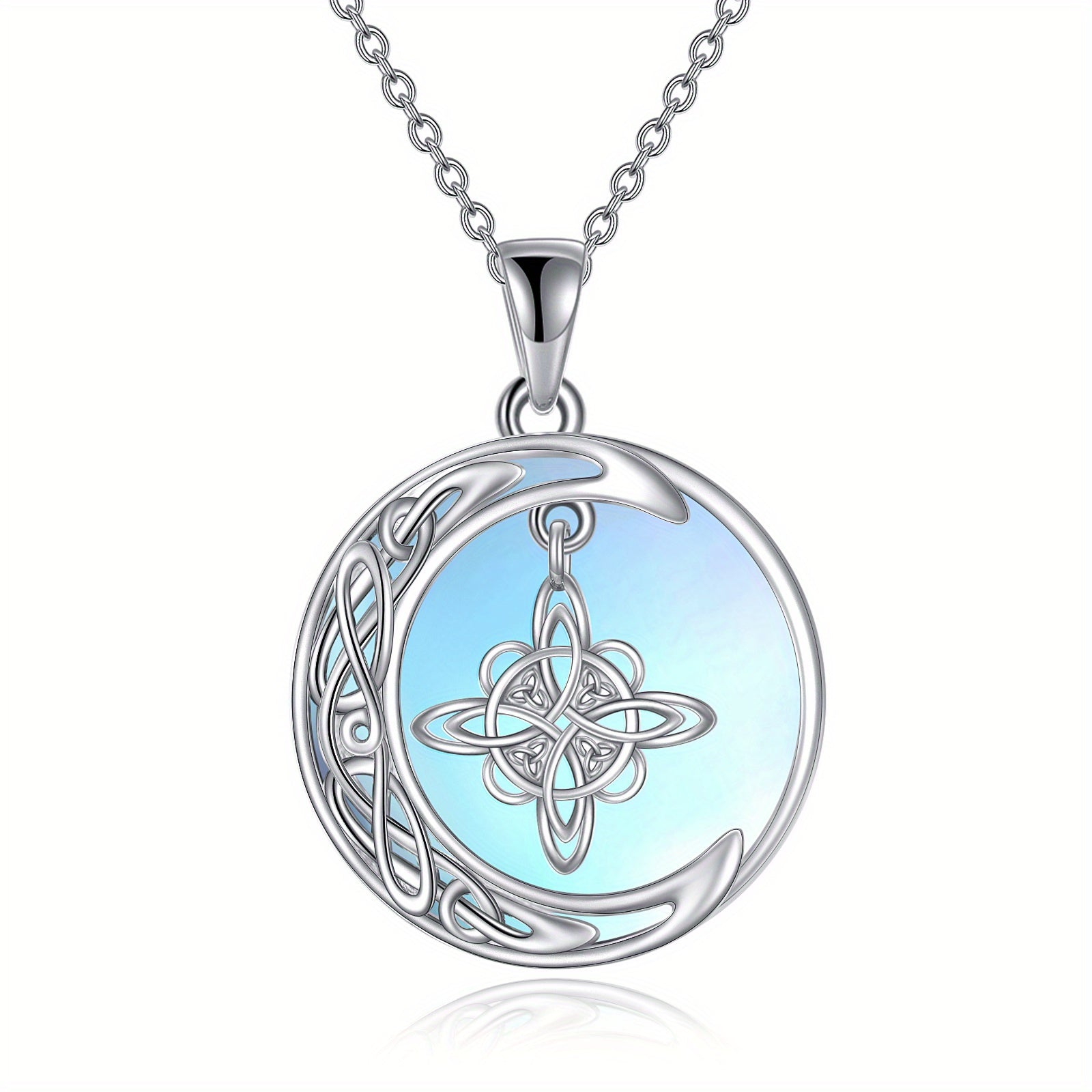 This Witch Knot Necklace features a 925 sterling silver Celtic knot pendant adorned with a synthetic moonstone. Perfect for those who embrace witchcraft and mysticism.