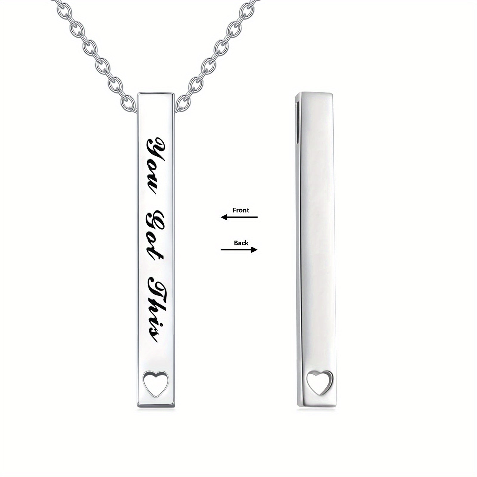 Empower yourself with this inspirational vertical bar necklace. Made of silver, it's perfect for women who need a reminder of their strength and potential.