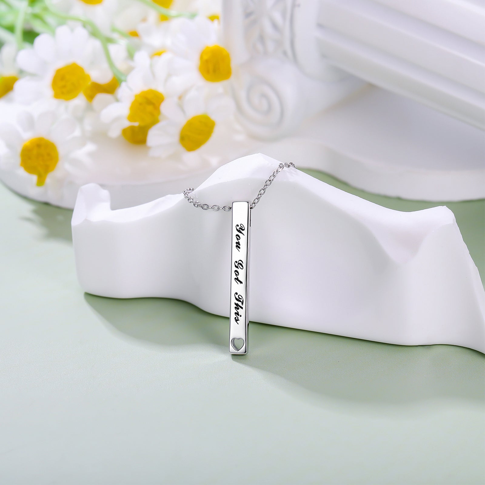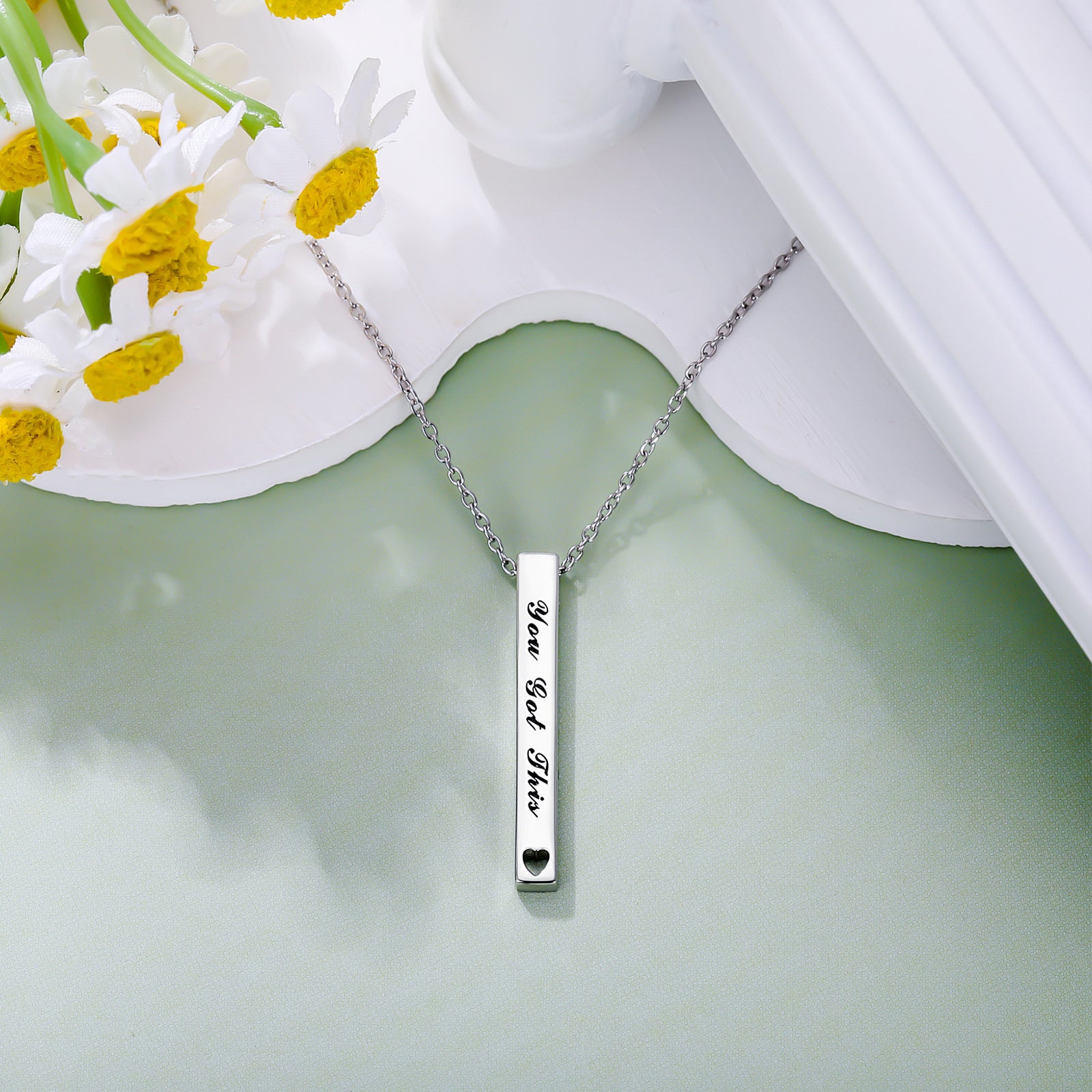 YFN You Can Do It Engraved Vertical Bar Necklace Silver