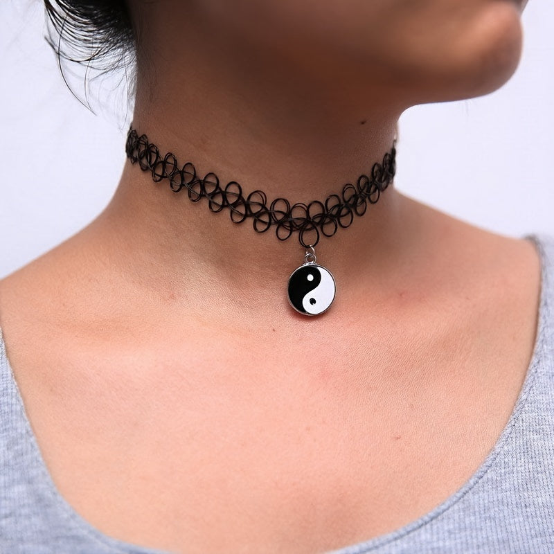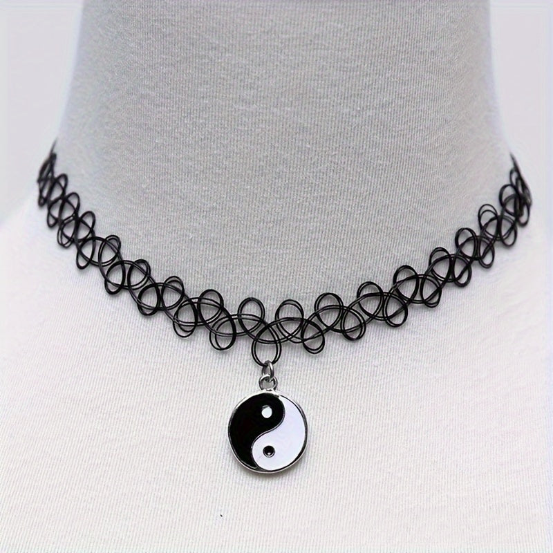 Elevate your style with this Gothic Choker Necklace featuring a coated fishing line chain with a Yin Yang pendant. Perfect for everyday wear or party outfits, this versatile piece adds a touch of edginess to any look.