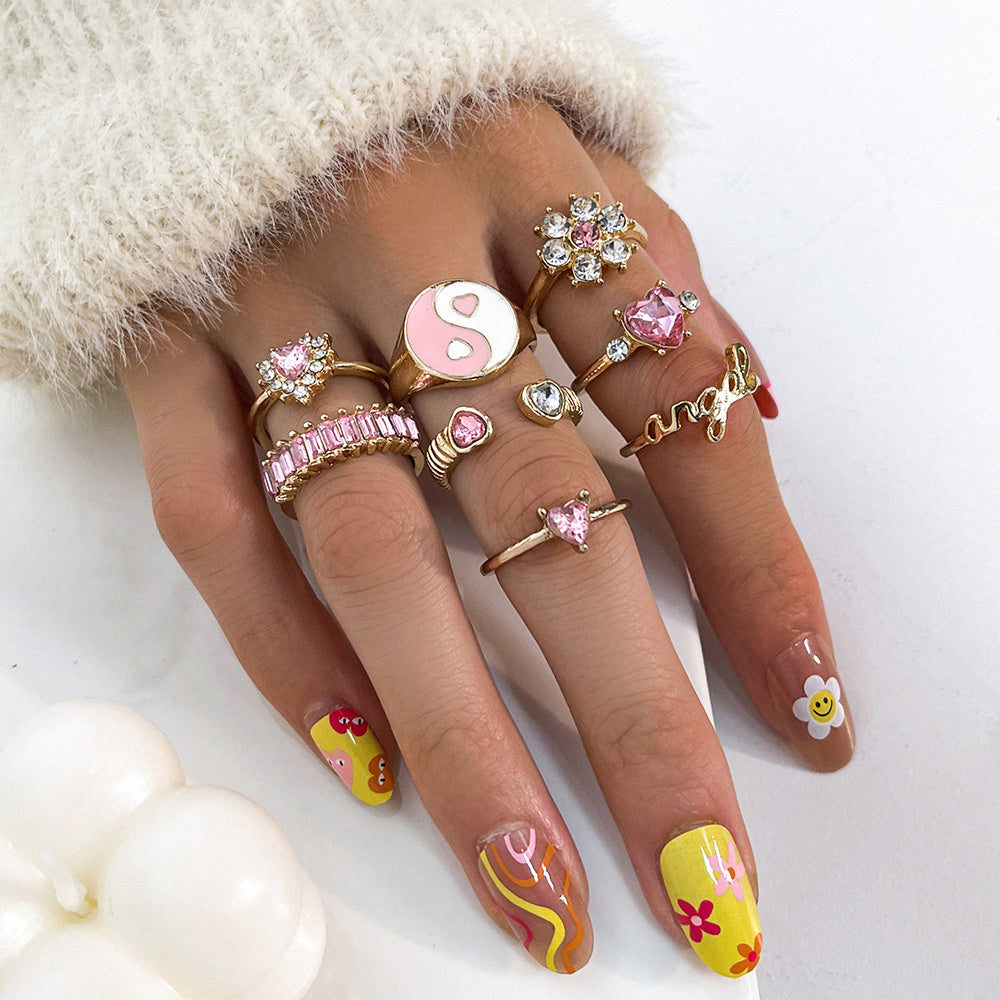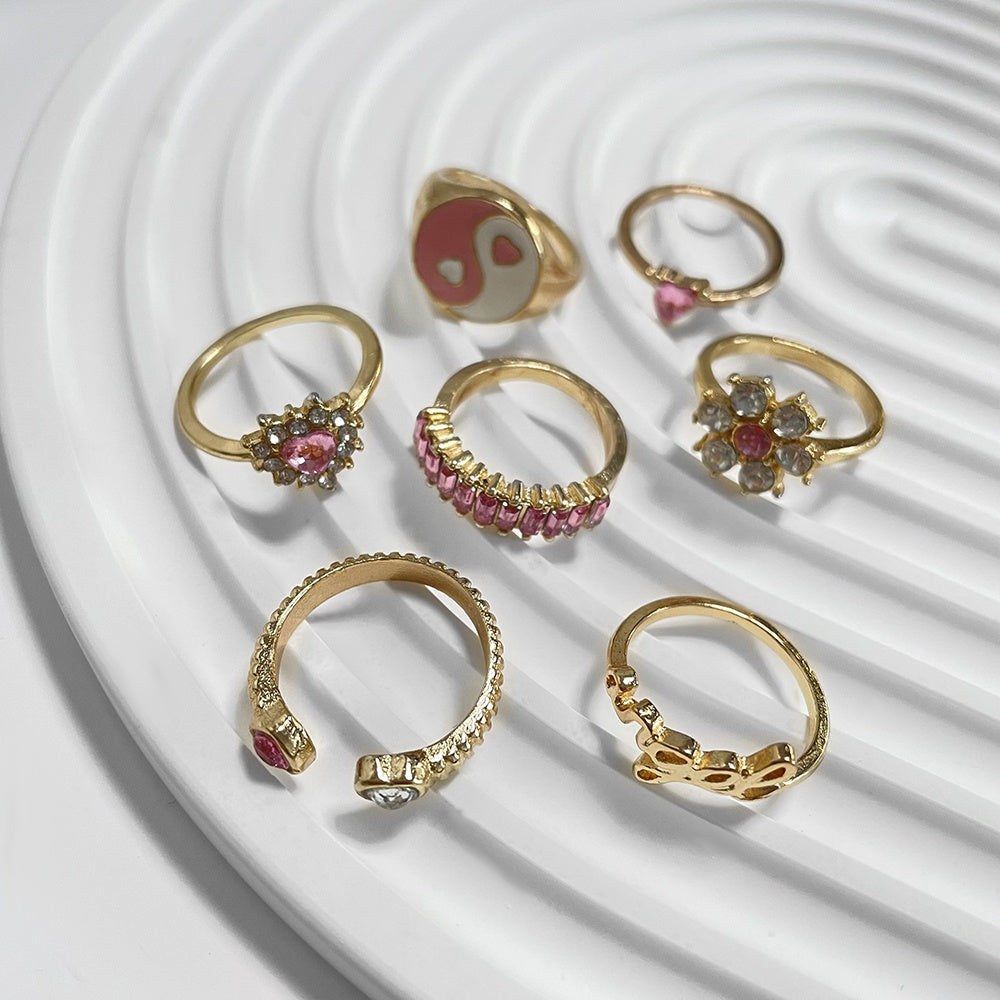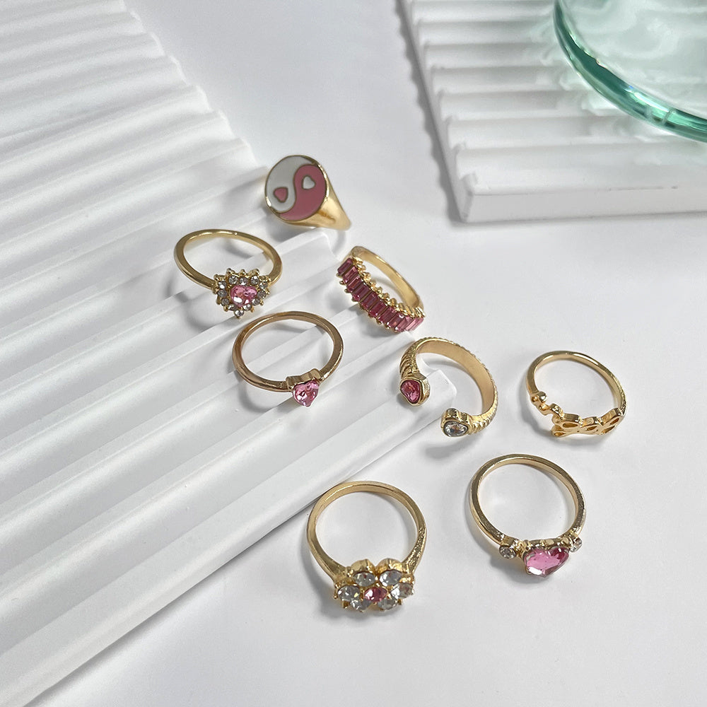 Yin & Yang Pink Zicron Love Ring Set