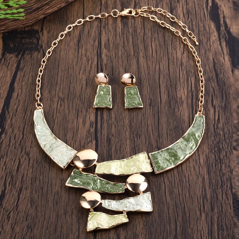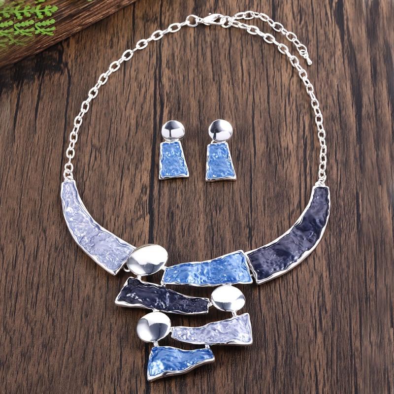 Complete your look with this stylish Zinc Alloy Jewelry Set featuring a necklace and earrings. Perfect for daily wear or parties, this set is made with stainless steel posts, making it suitable for all seasons. It's a versatile gift for any occasion.