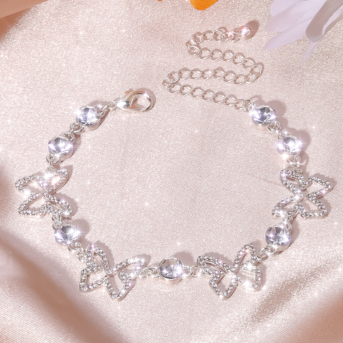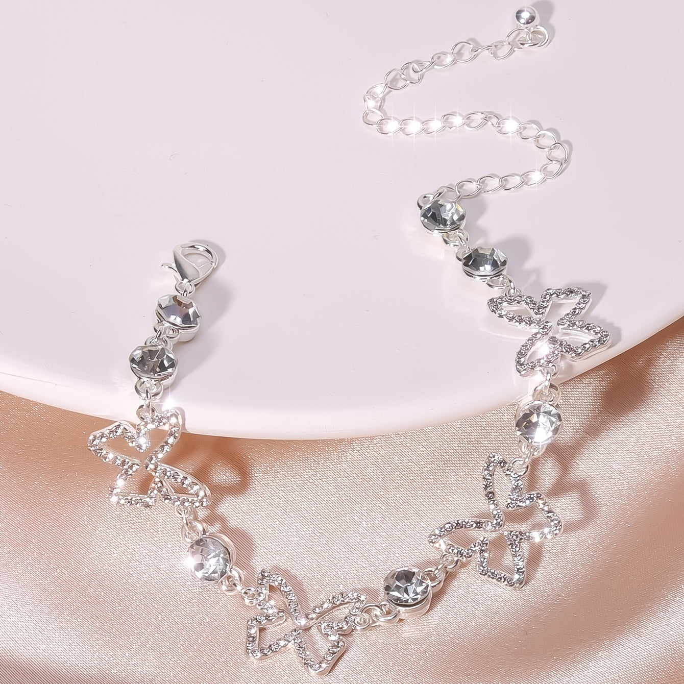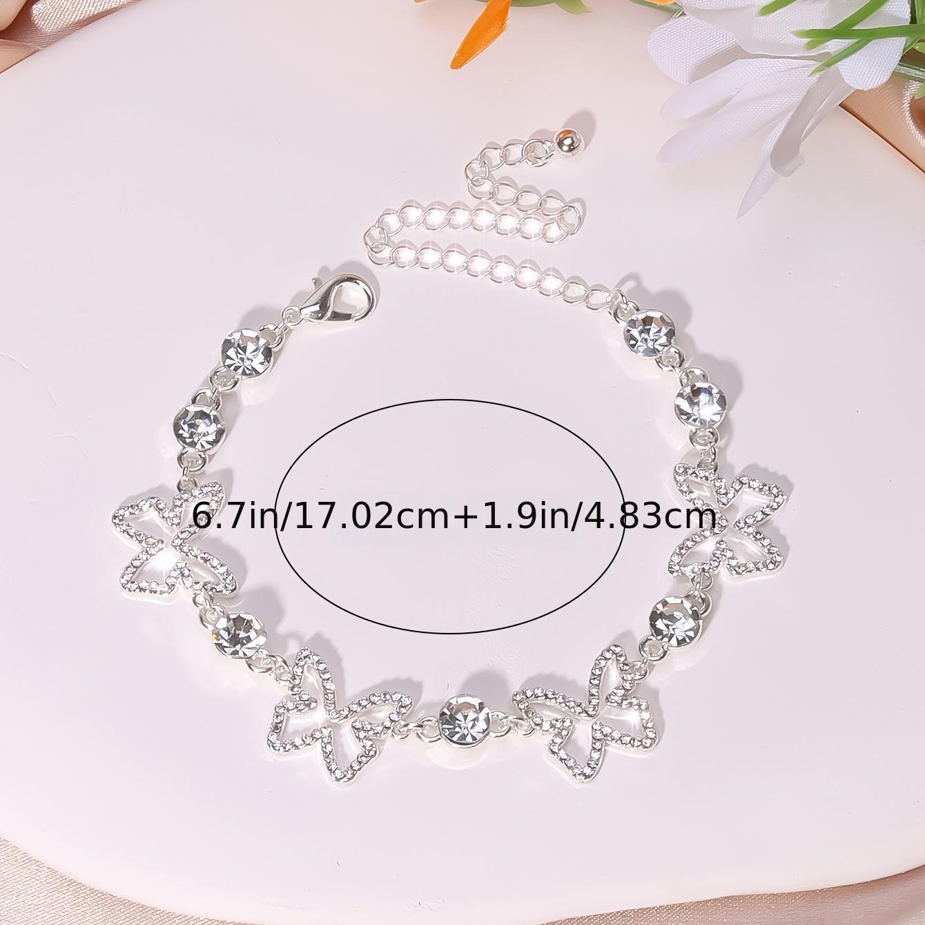 This elegant zircon chain bracelet features a hollow butterfly shape design with sparkling beads. It is adjustable to fit different wrist sizes, making it ideal for weddings or special occasions. Add a touch of glamour with this crystal jewelry piece.