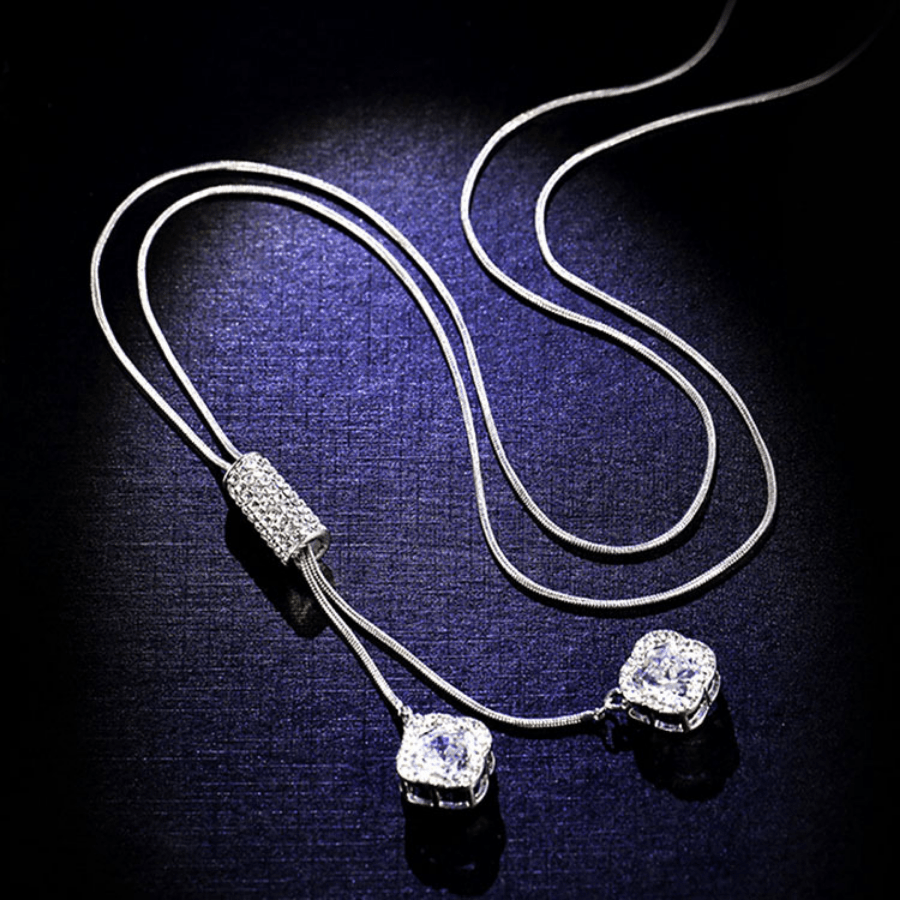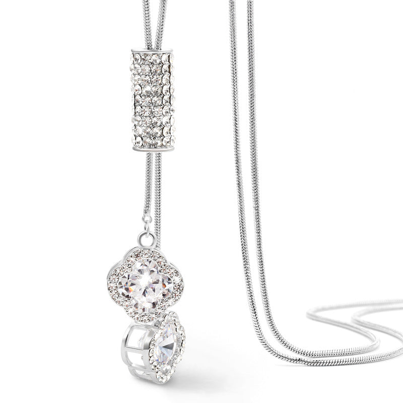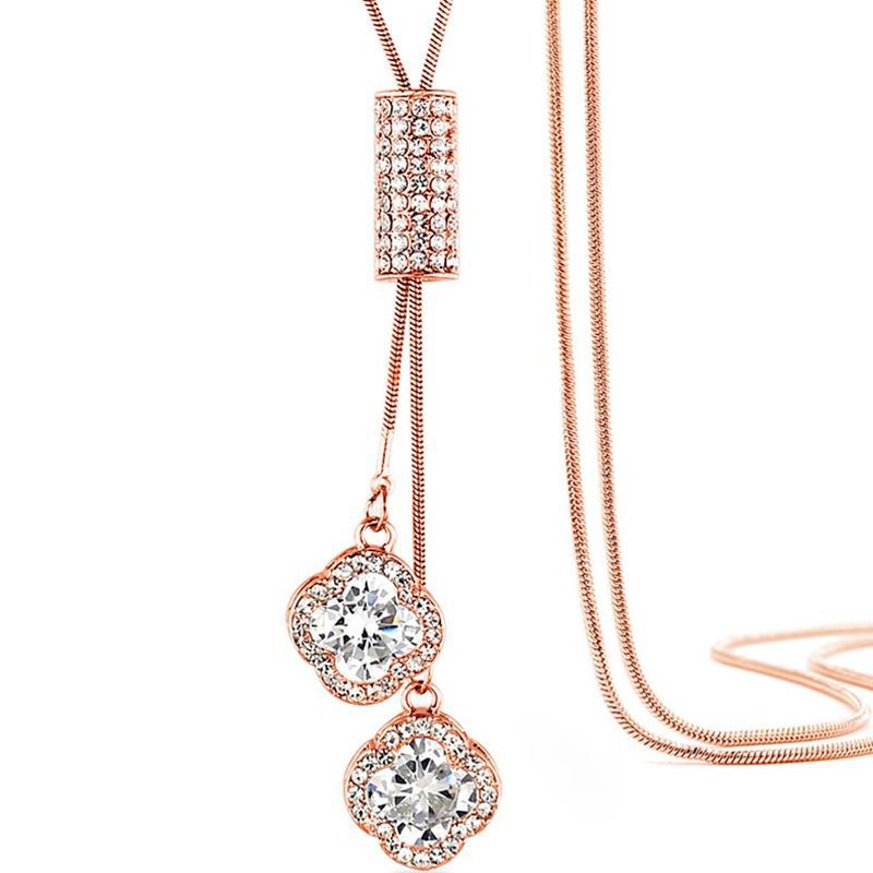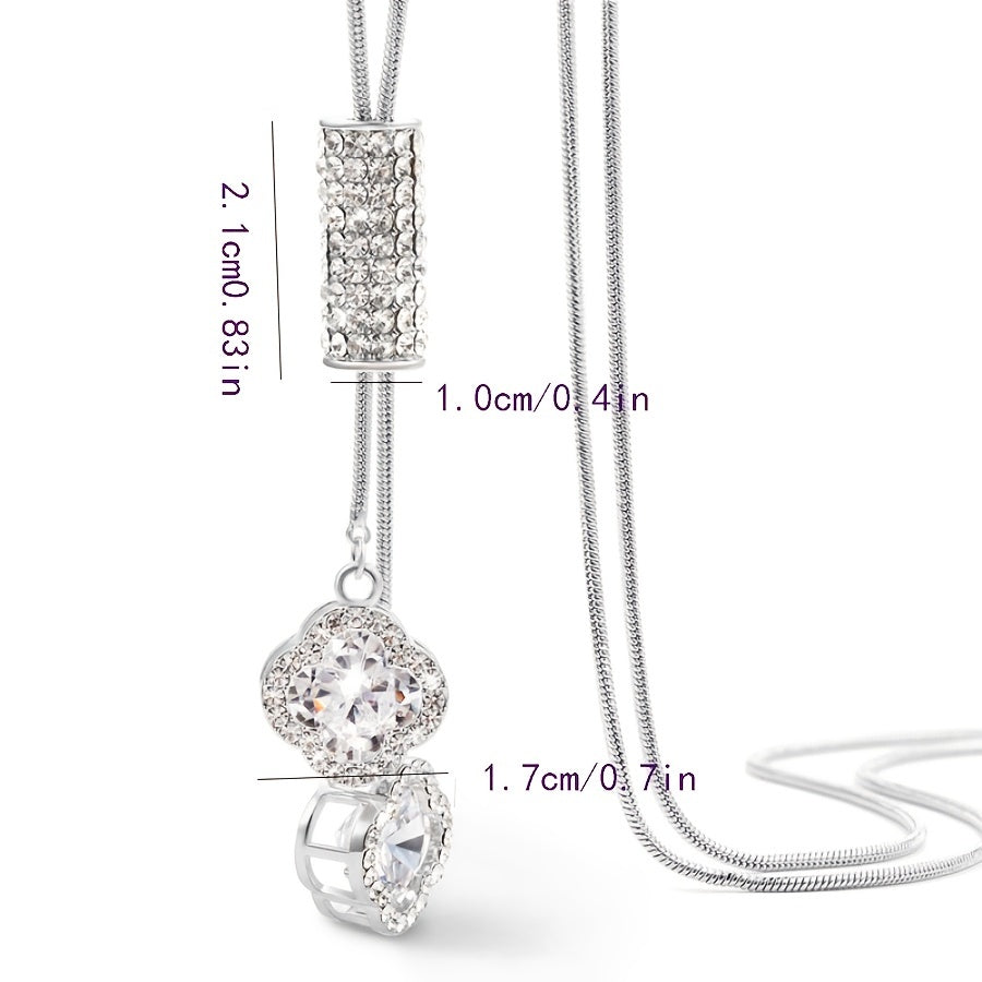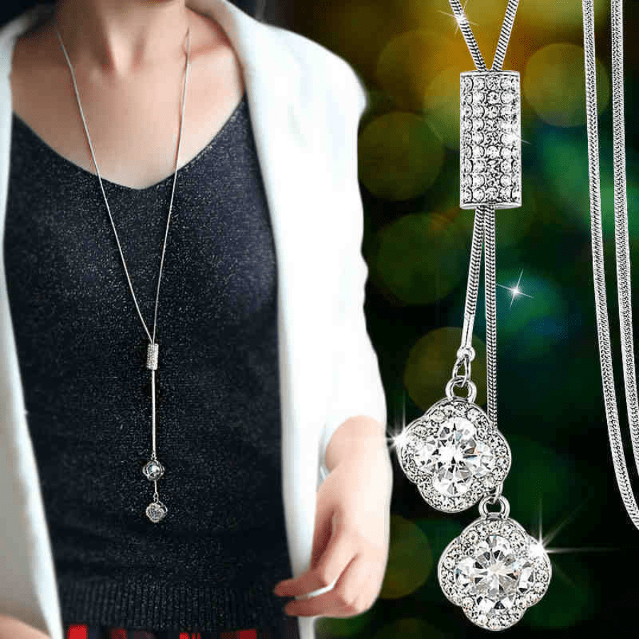 Add a touch of chic style with this elegant Zircon Four Leaf Clover Sweater Chain Necklace featuring a long section design with rhinestone accents and tassel details. A versatile accessory that complements all your outfits.