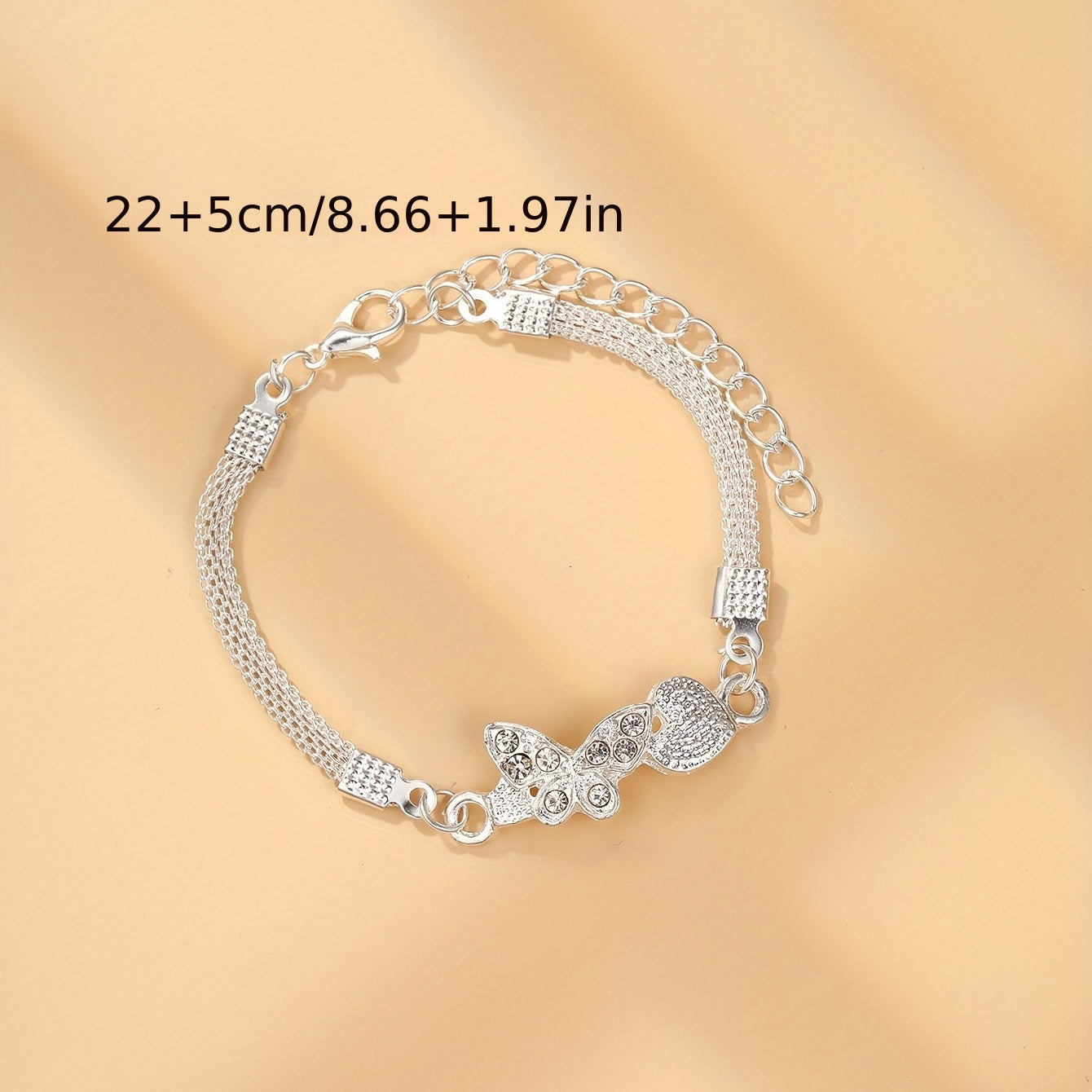Add a touch of elegance to your ankle with this stunning anklet featuring a cross, palm, and butterfly design. The anklet is adorned with sparkling zircon stones for a glamorous look.