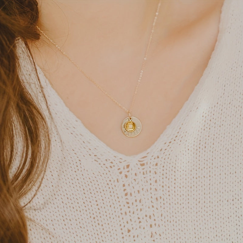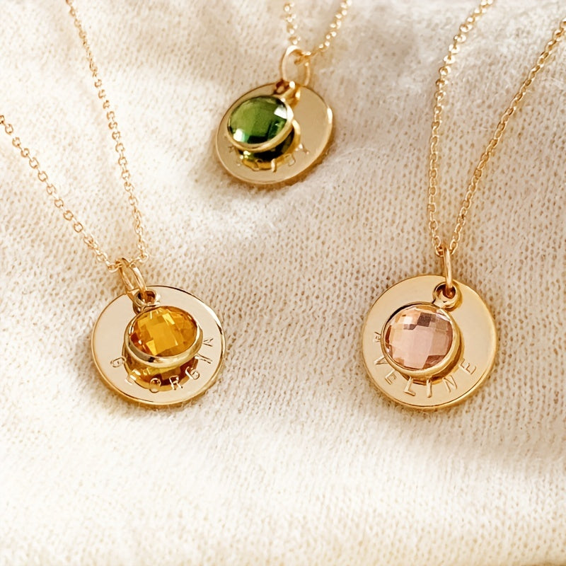 This personalized necklace features zircon decoration and is made of stainless steel. It's the perfect birthday gift for someone special.