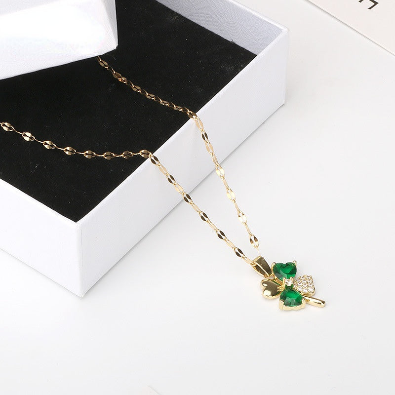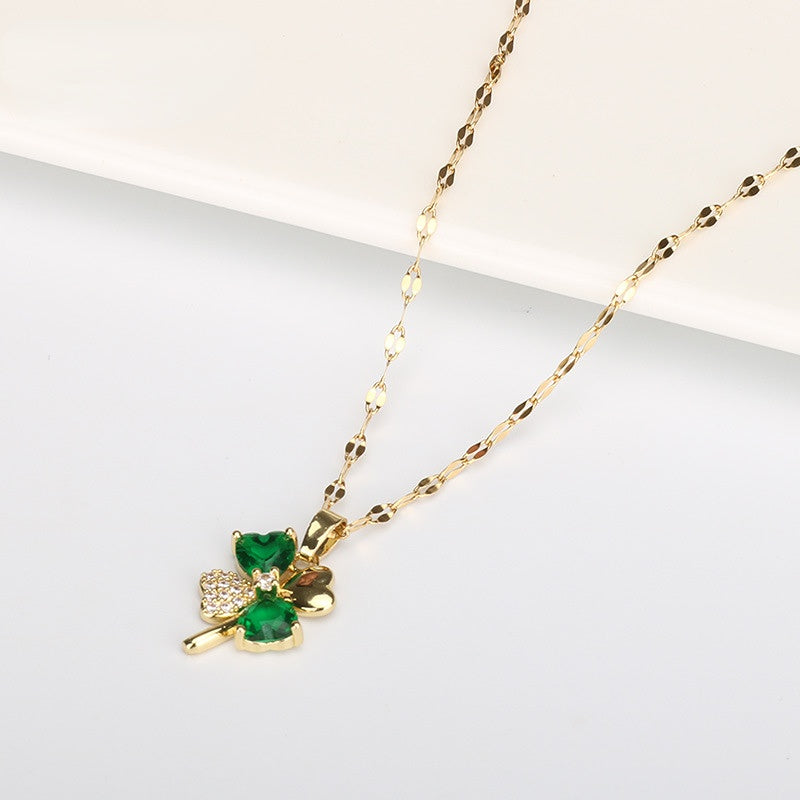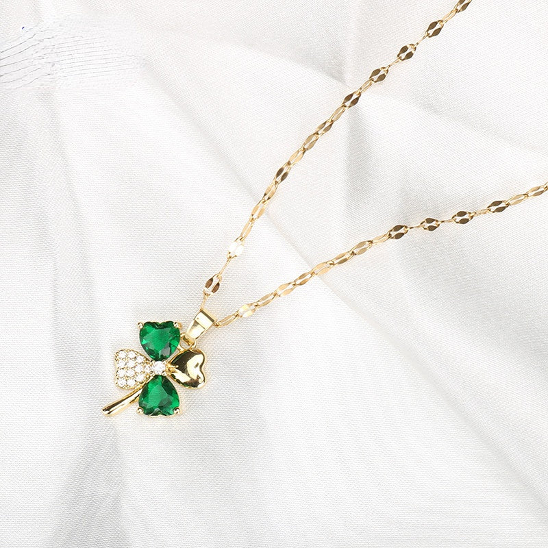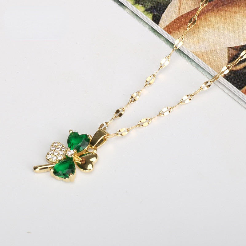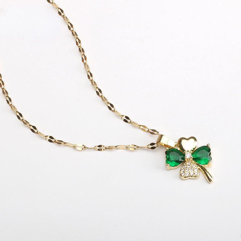 Elegant and sparkling flower necklace with micro inlaid zircon stones, plated with 14K gold.