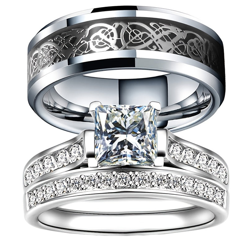 This stylish couple ring set features zircon gemstones and is perfect for engagements, weddings, or as a gift for your loved one.
