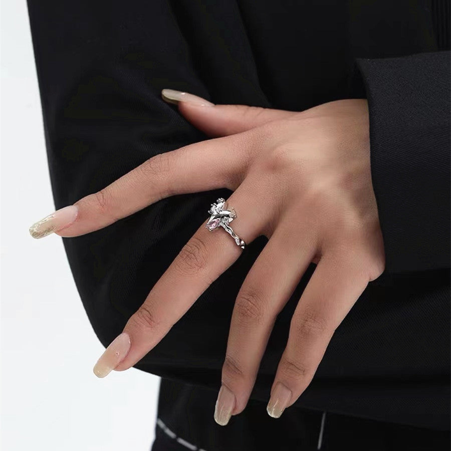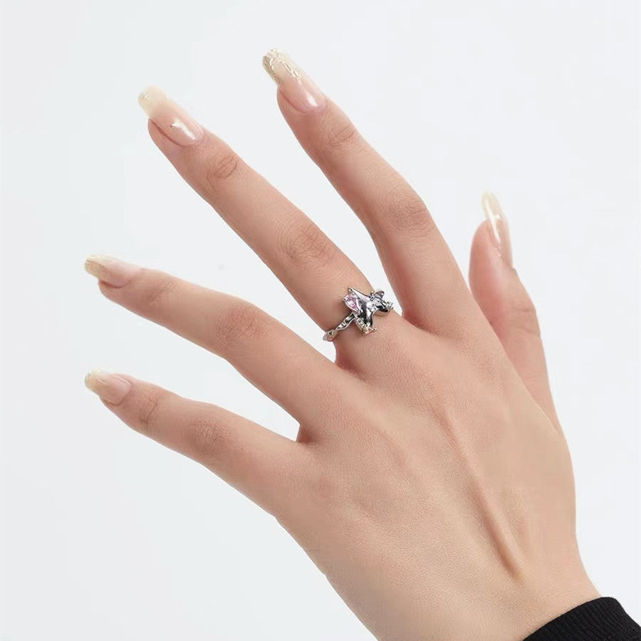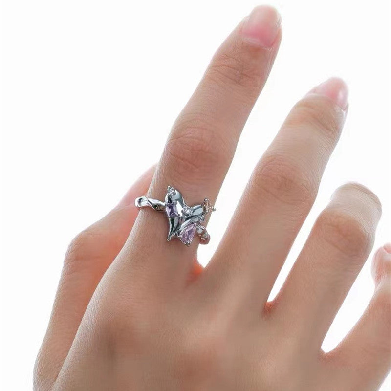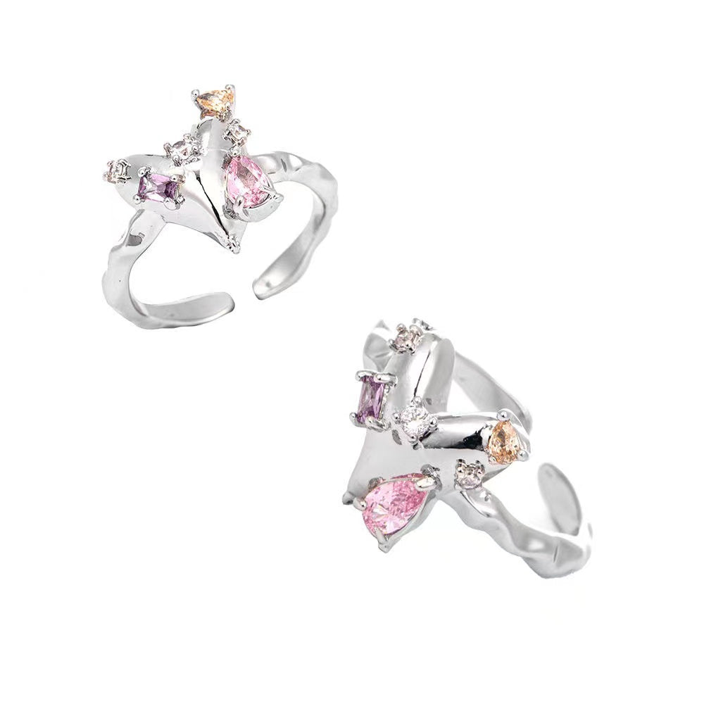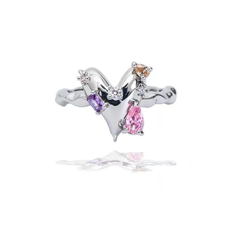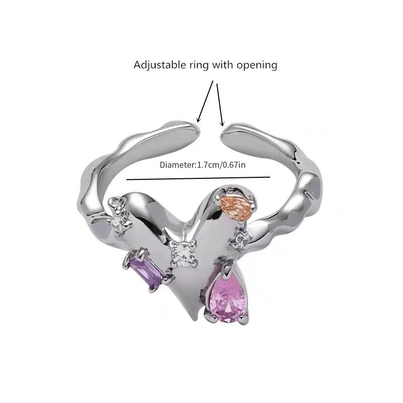 Beautiful colored zircon heart ring with an open design, perfect for adding a touch of elegance to any outfit.
