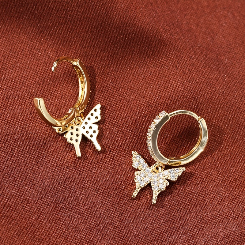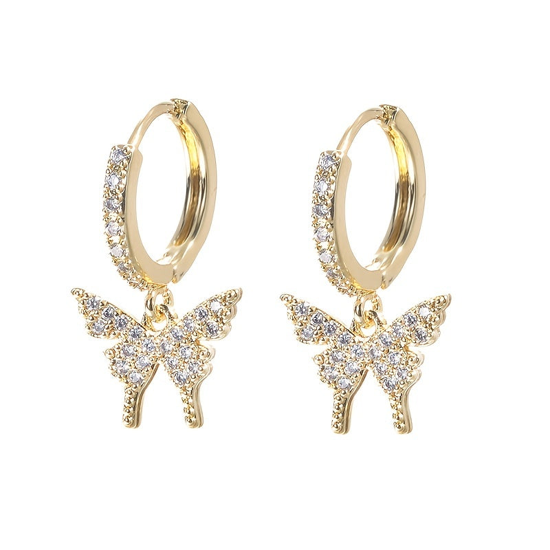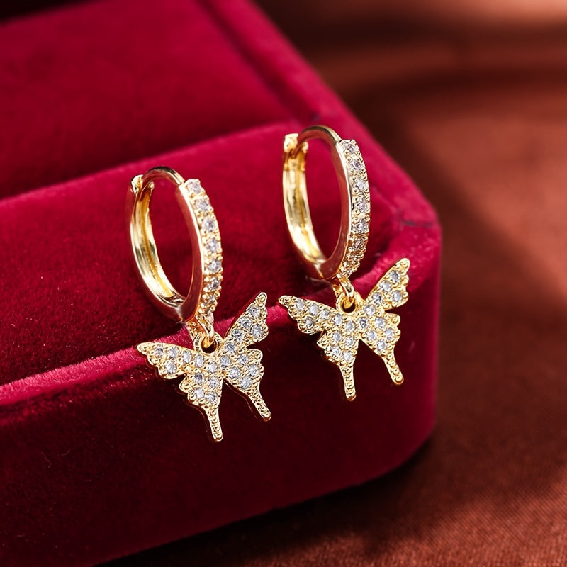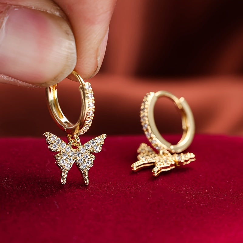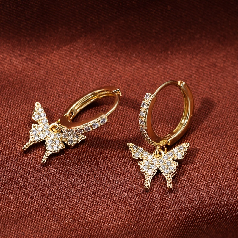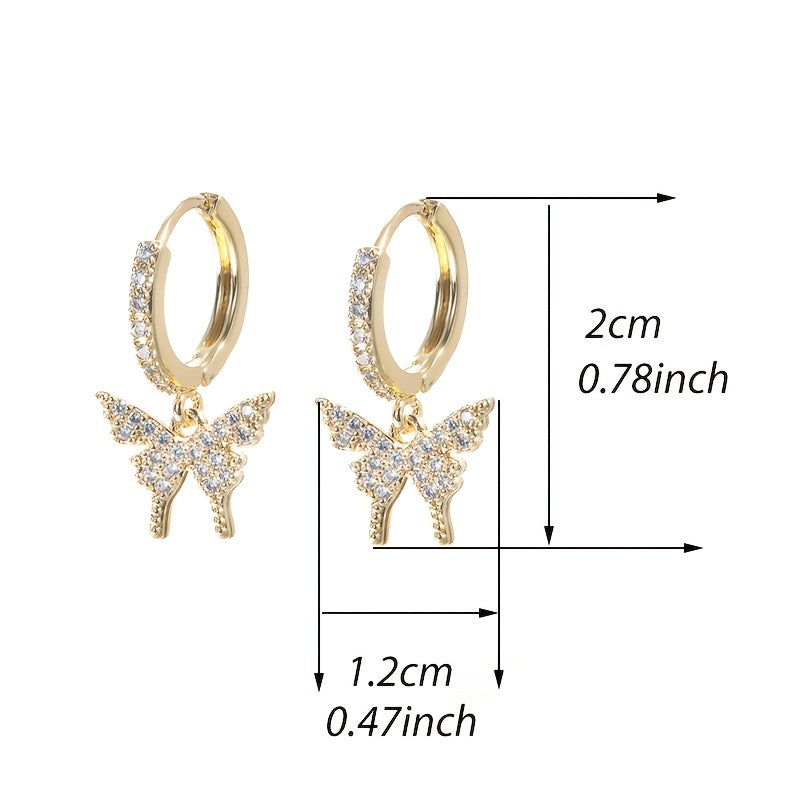These butterfly inlaid zircon earrings are perfect for holiday parties. Plated with 18K gold, they are a stylish addition to any outfit.