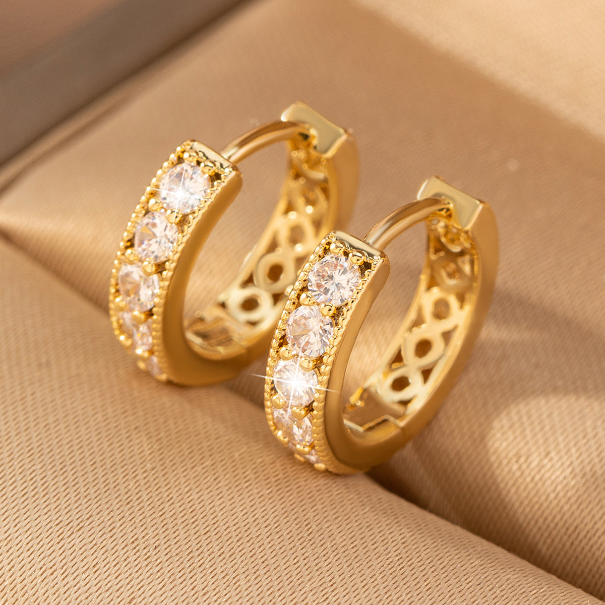 Add a touch of personality to your daily outfits with these stunning stud earrings featuring zircon details. Perfect for any occasion.