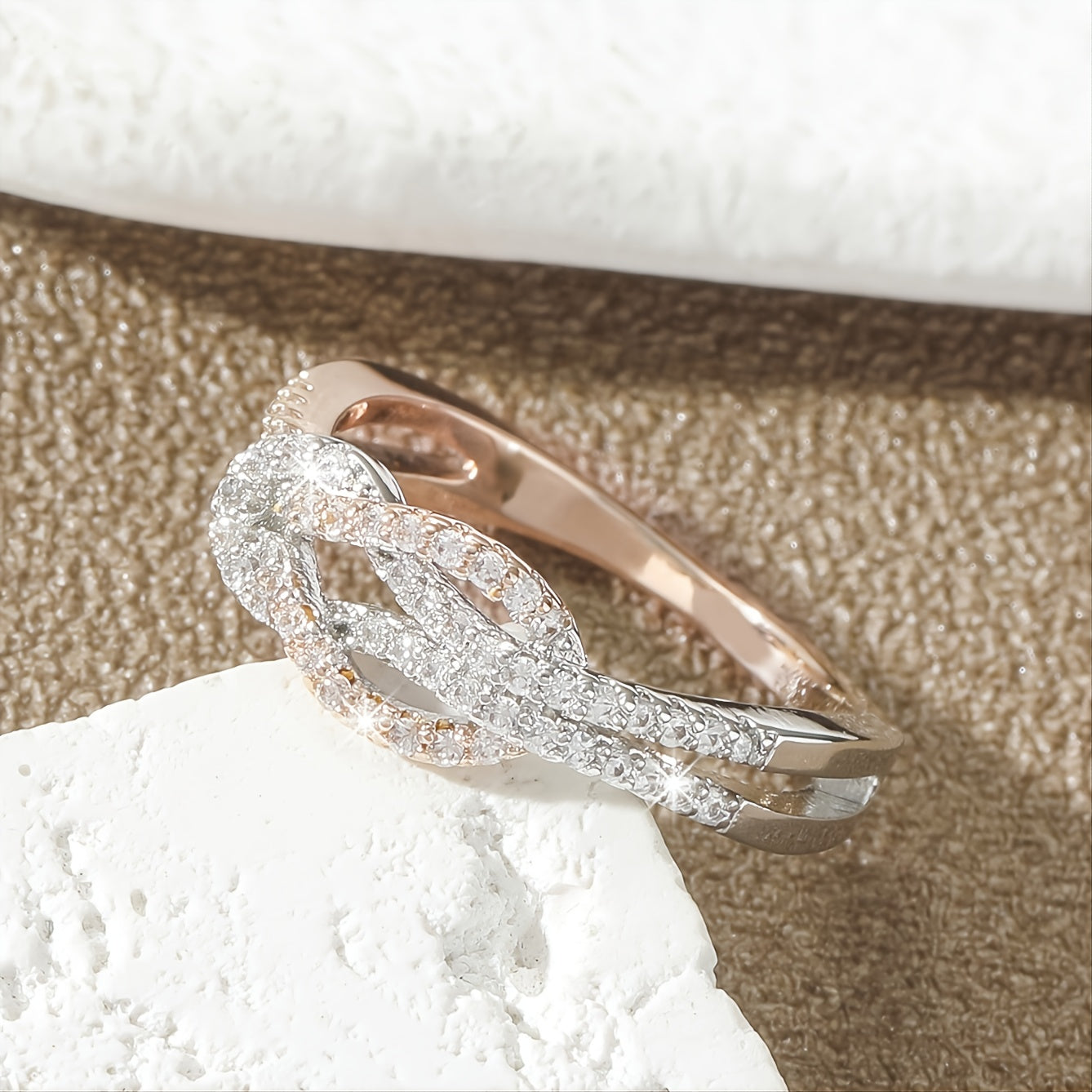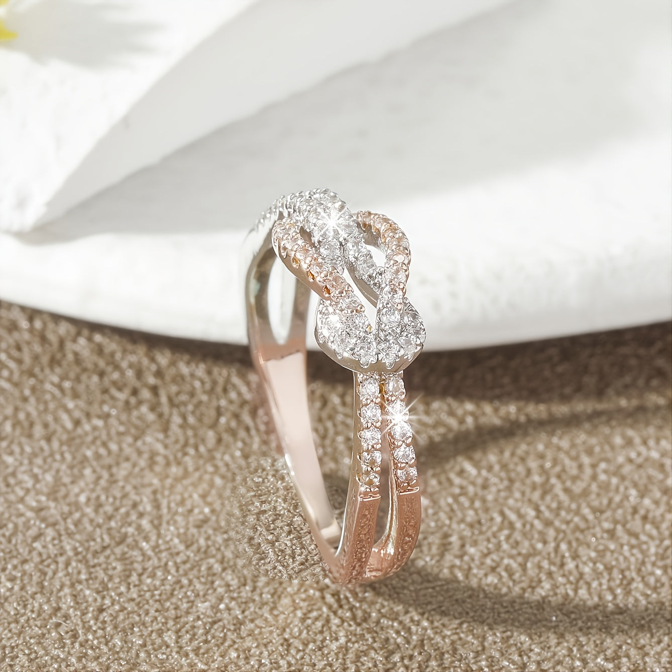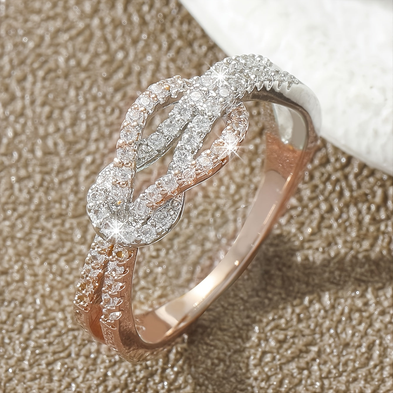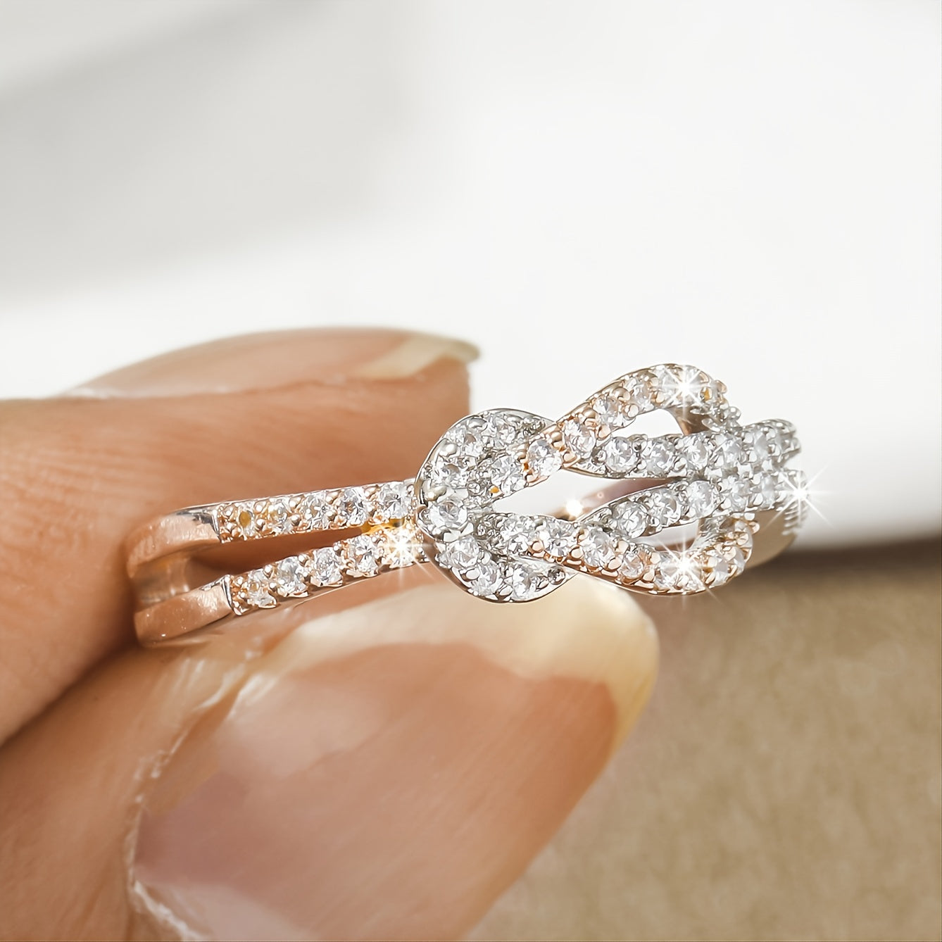 This stunning zircon inlaid ring is a perfect accessory for weddings, engagements, and parties. The intricate knot design adds an elegant touch to your look.